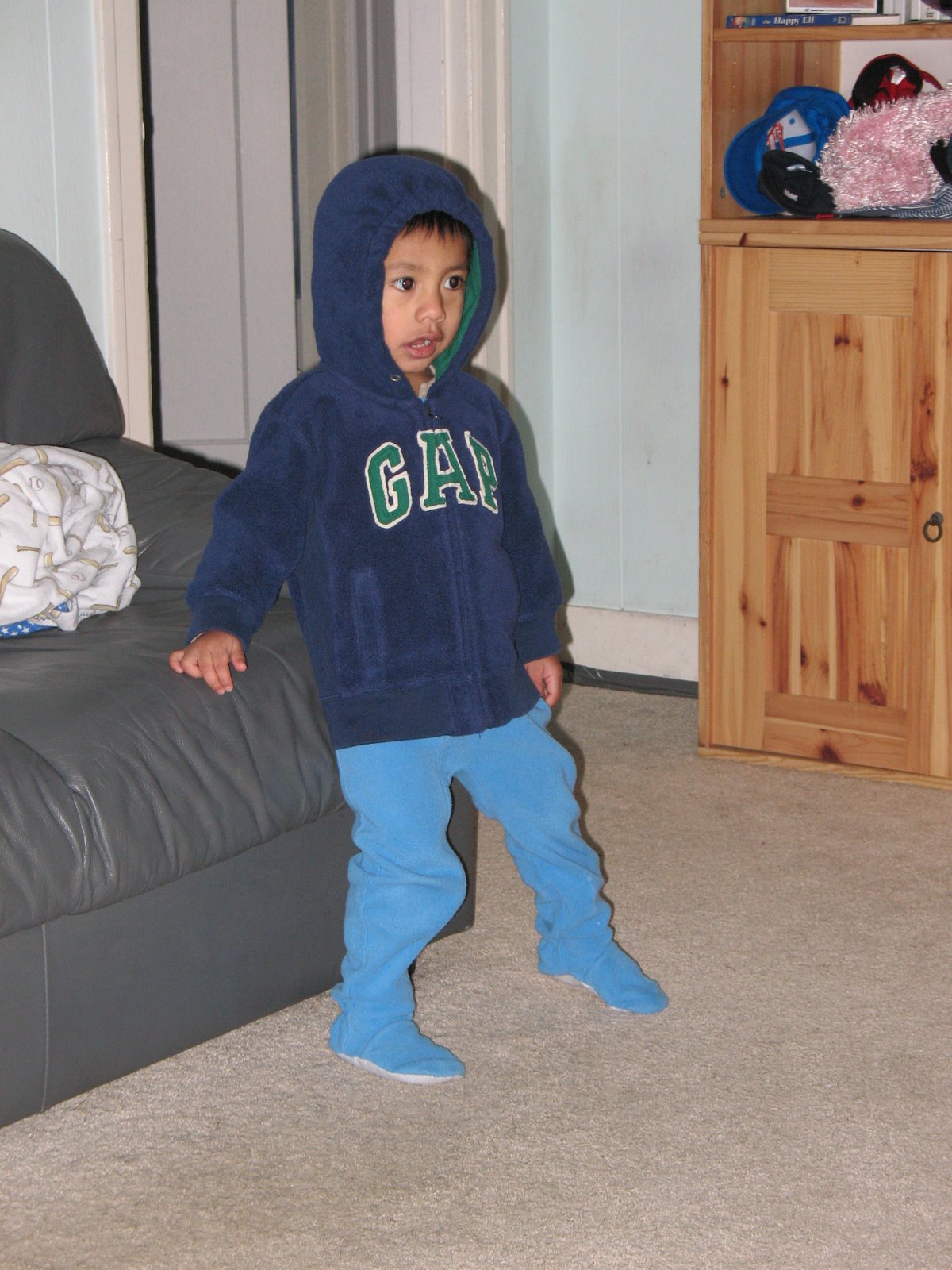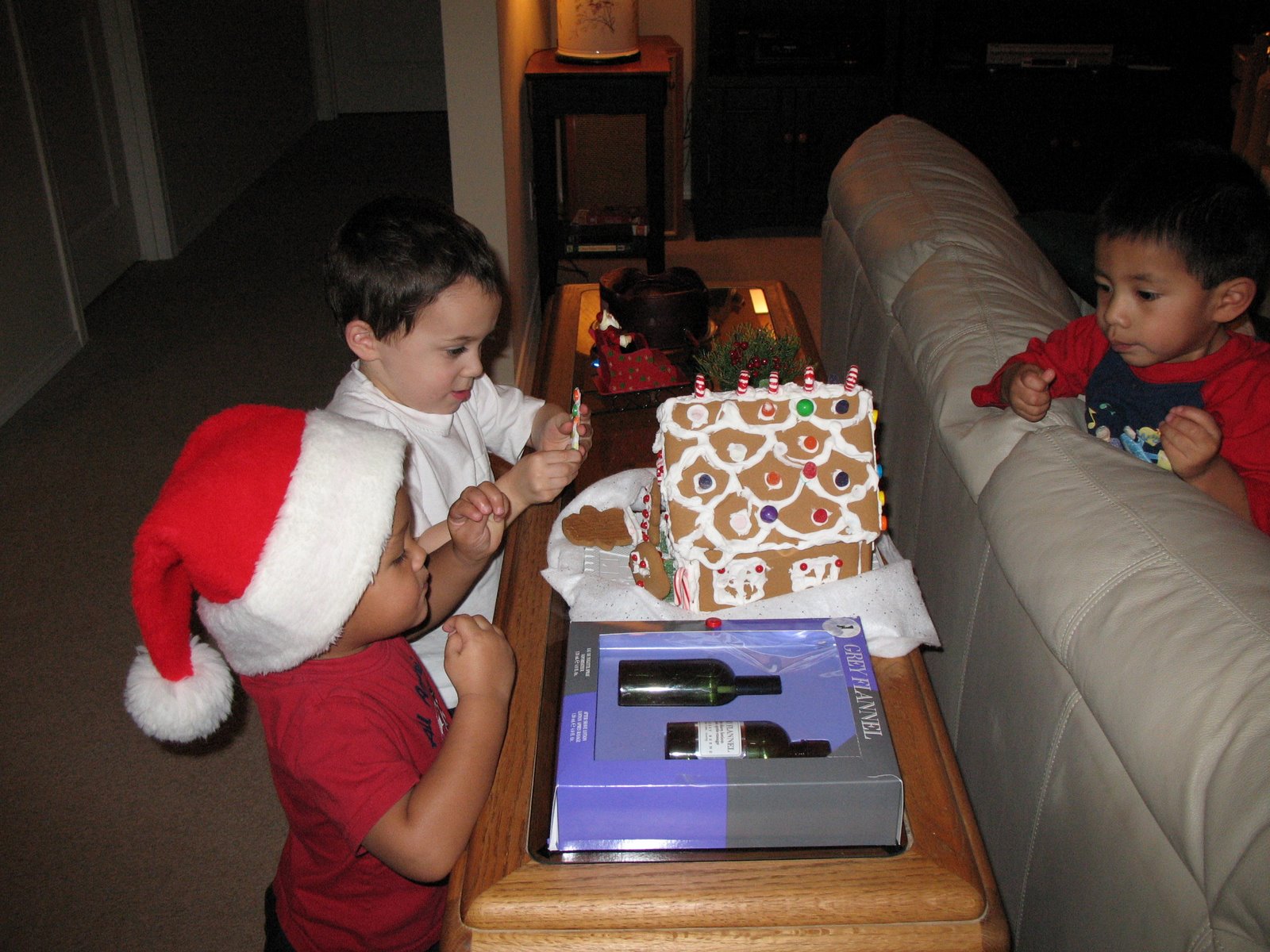Tried to get the boys down for a nap and Levi and Trey did pretty well with that, but we fought Carlos for a couple of hours to no avail. Went to my folks house tonight and we drove around to see some cool Christmas lights in Suquamish and Poulsbo. There was on cul de sac just about NK high school that really outdid themselves, I mean the guy came out onto his porch and made it snow, had Santa coming up out of a chimney, the Grinch driving a fire truck with music and all. If you want to see it I can tell you how to get there. Well worth it! Went back to my folks for crab dinner (YUM, great tradition!) and the boys opened their one present on Christmas Eve, their new pajamas! They got in the tub, got on their new jammies and then we just came home and got them into bed.