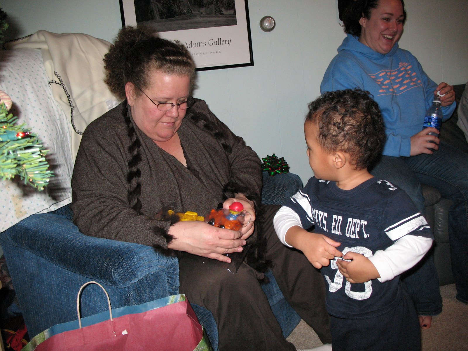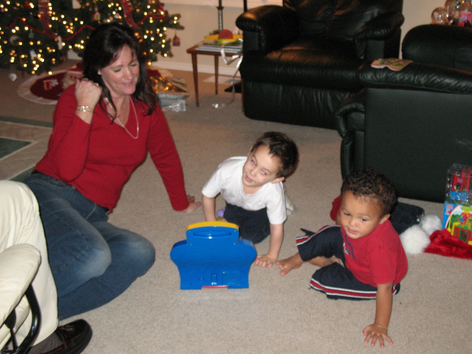 Dee took the boys home so I could finish my shopping in peace, thank you Dee! Anyhow, they went home to take a nap and by the time I got home we had our Christmas celebration with the Vails, Gay and Rob and Laura and Chelsea. The boys went nuts and Levi took a liking to Rob and was going to get his sleeping bag so he could have a sleepover when they left. It was TOO cute. I think Rob enjoyed it, too. Anyhow, Rob’s planning on picking Levi up for some guy time this afternoon so that’ll be great for him.