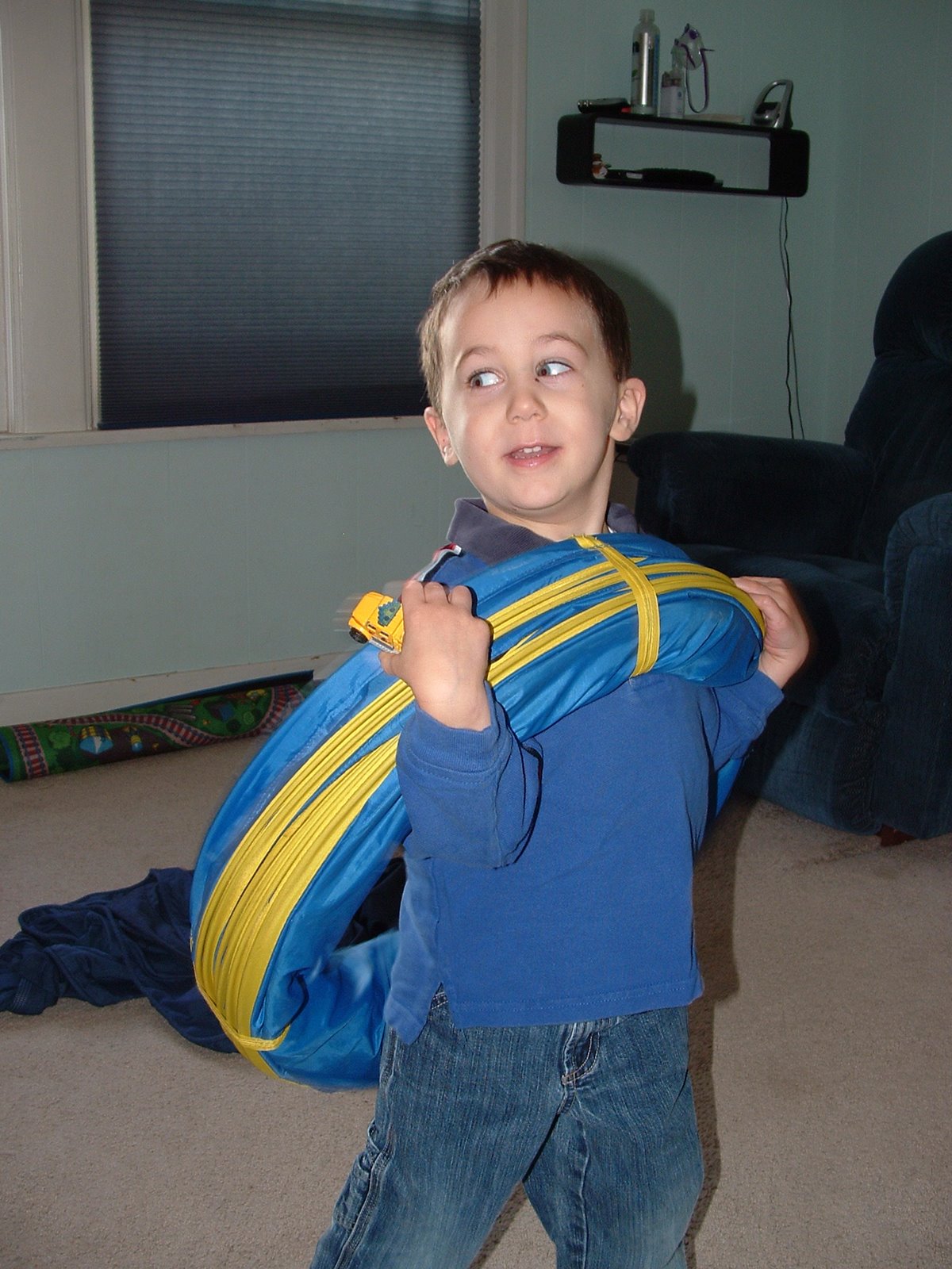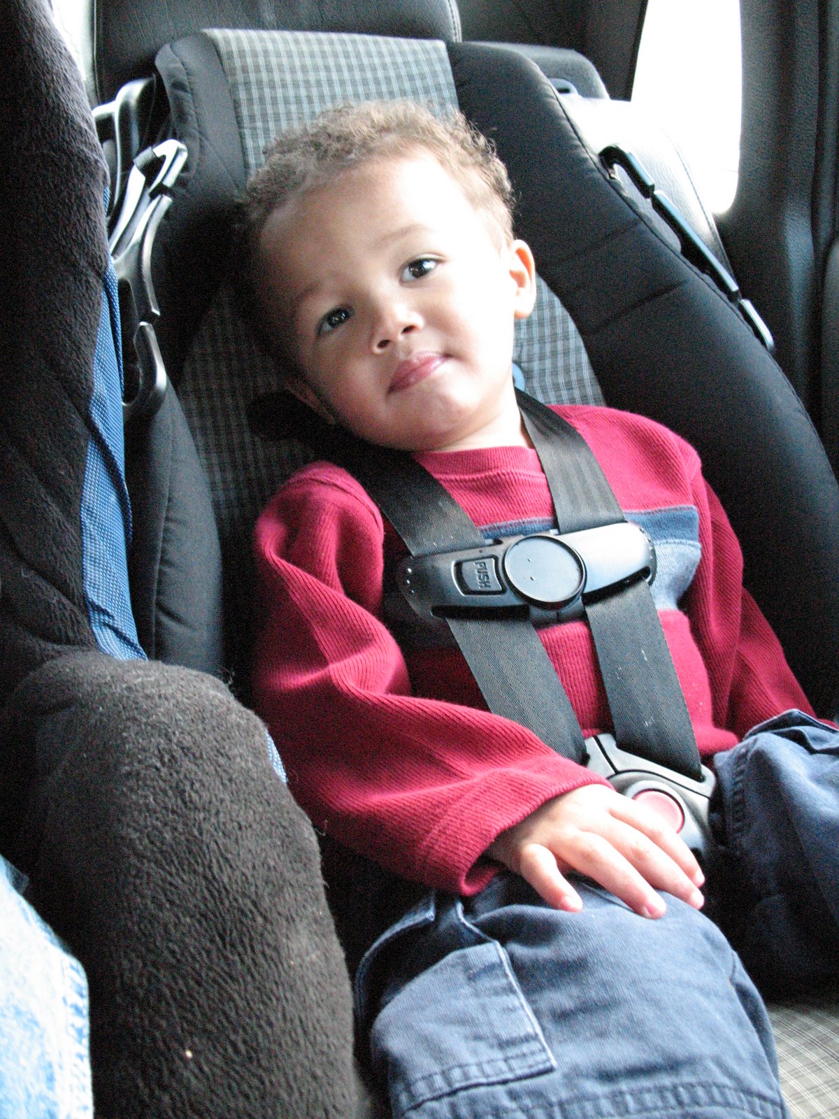 Also yesterday we took the boys to the foster parent Christmas party and it was cool…Santa came in on a white Honda Goldwing motorcycle! Trey was SO not having anything to do with Santa this year, but he did like his Thomas the Train pull toy.