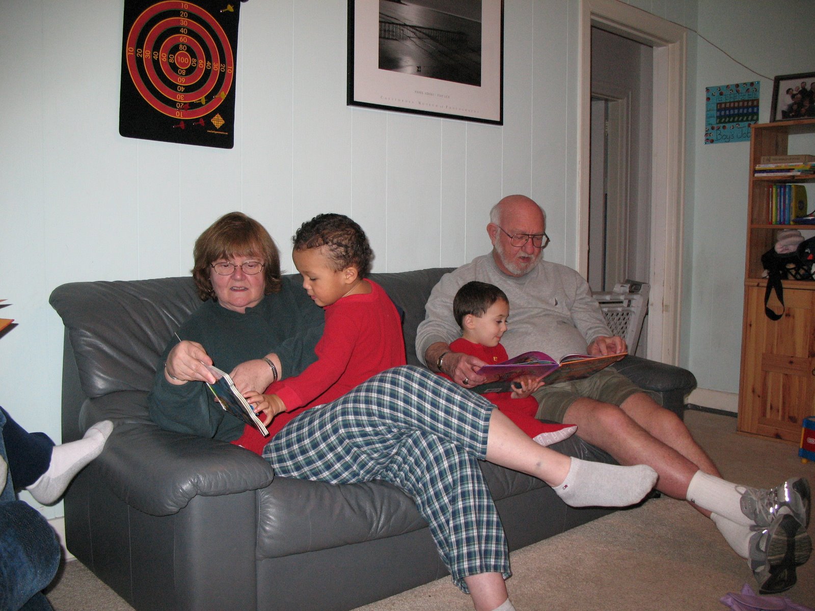 Then we’ve been cleaning out the house so we had some deliveries to make…cereal to the Kruses (we had a ton that the boys weren’t eating quick enough) and I had to stop by Nana and Papa’s to fax my receipt from Applebee’s yesterday so I would get paid for that. Came home, got the boys a nap while Suzanne and I went to Safeway for our weekly shopping. My mom made her famous spaghetti sauce and she and my dad came for dinner tonight. The boys are so excited to spend time with Nana/Papa and they have really missed seeing them all the time since we got back from Colorado. We got spoiled with the amount of time together. We got to read lots of stories before bedtime, too and even made a little movie to send to Luca.