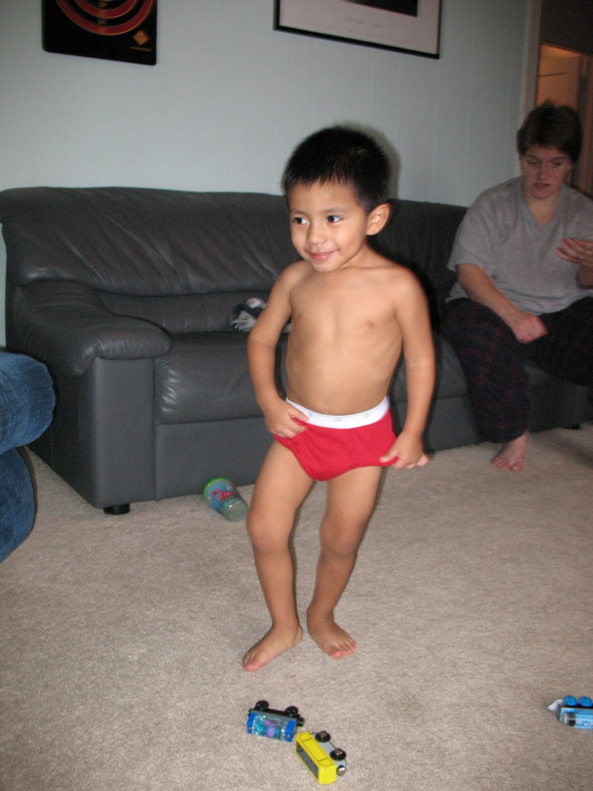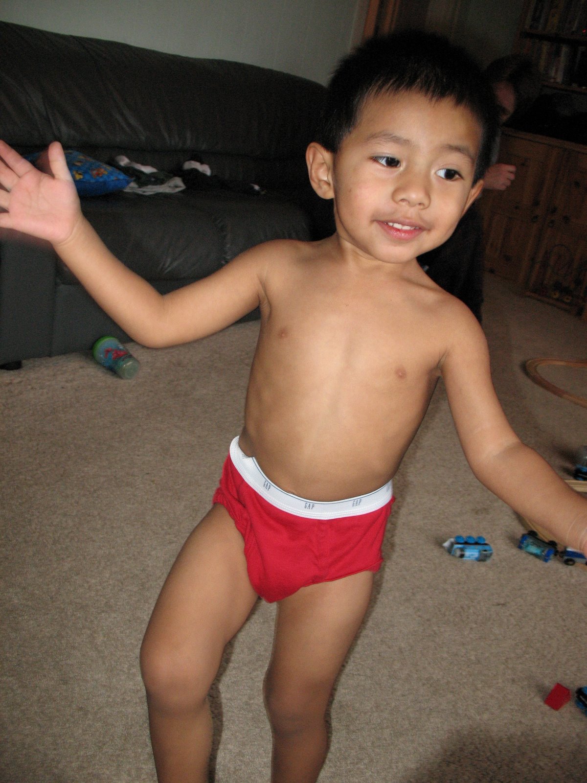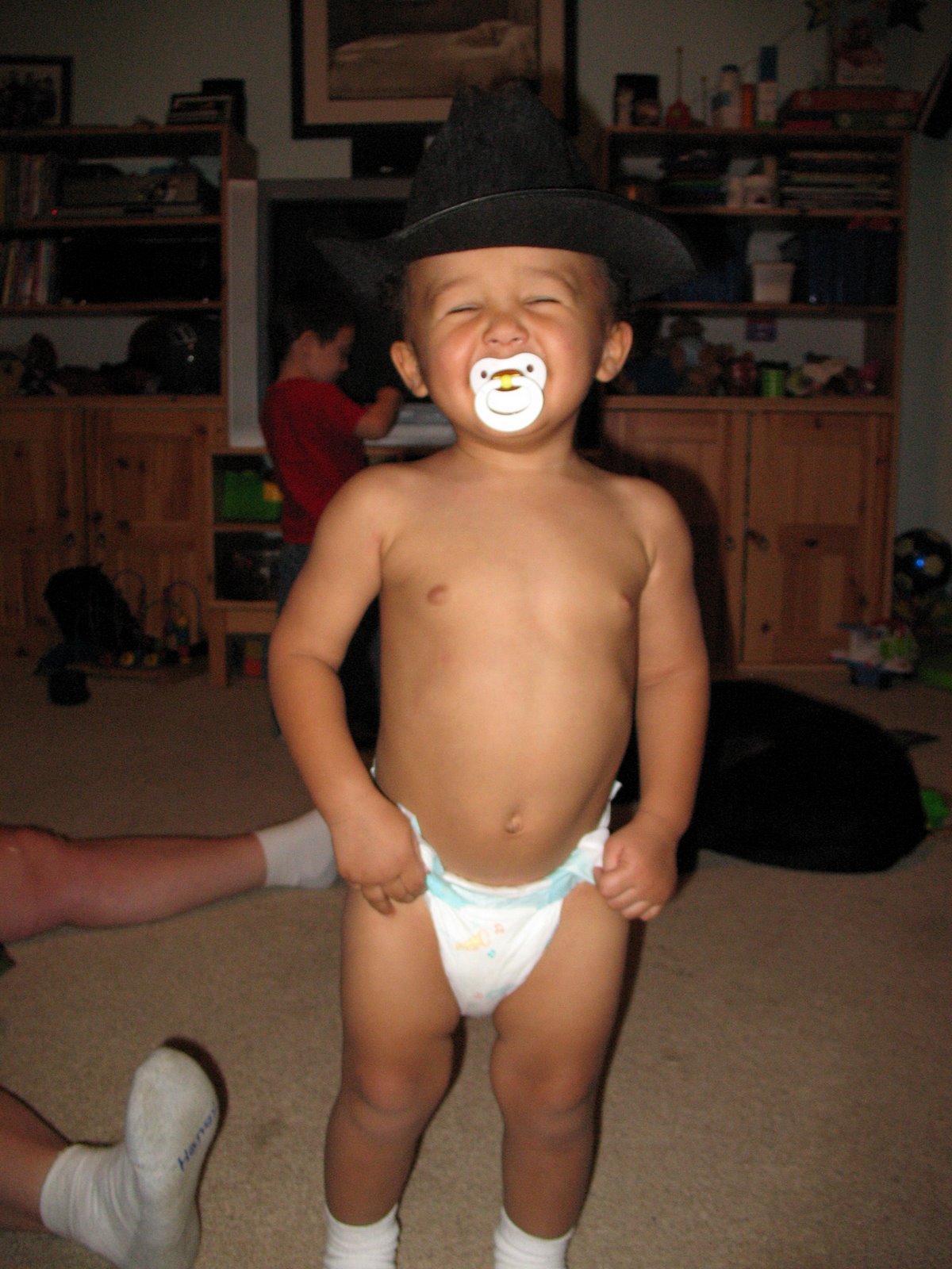 Trey had his 18 month check up today…got shots (bummer but he was a trooper and now won’t have to get more until he’s 4 years old). He’s healthy, 31 pounds and in the 95+ percentile for his age. The funny part is…Trey’s head is 50 centimeters around and mine is only 52 inches! Wondering how big he’s gonna be….he’s wearing the same size shoes as Levi at this point and almost wearing the same clothes size as him as well.