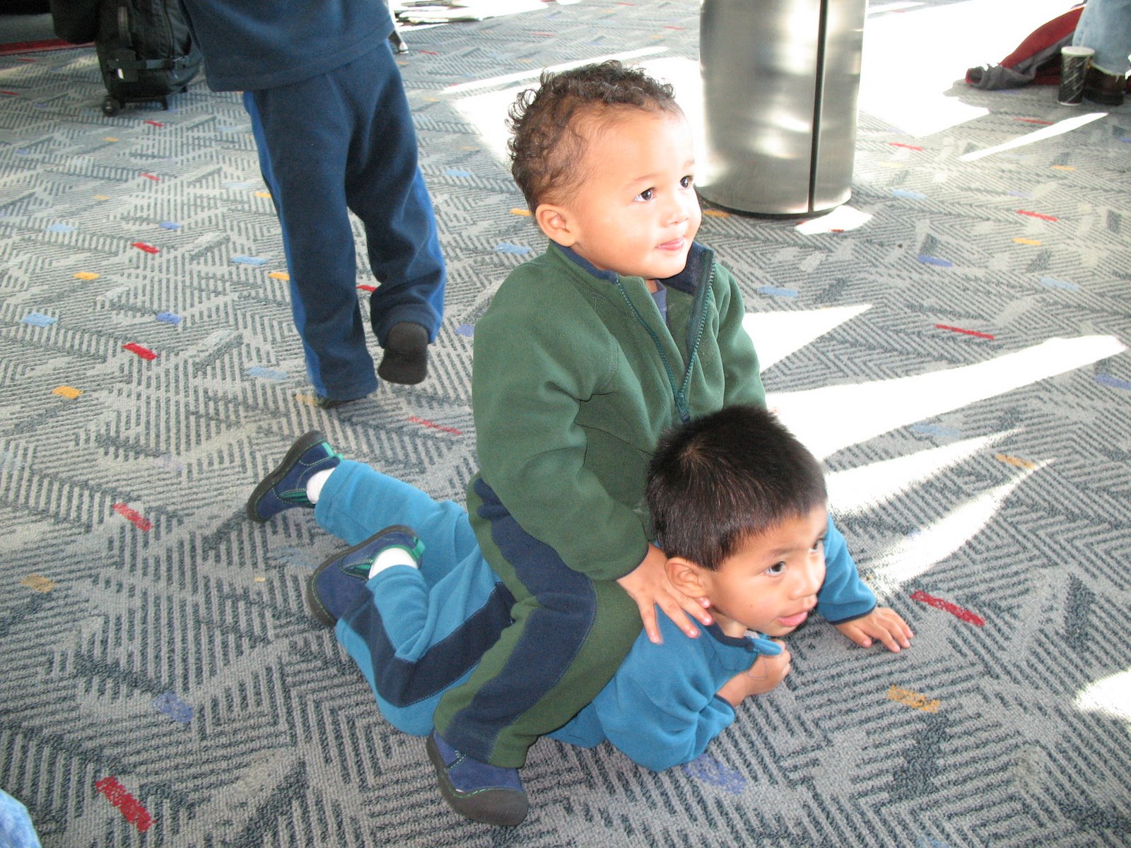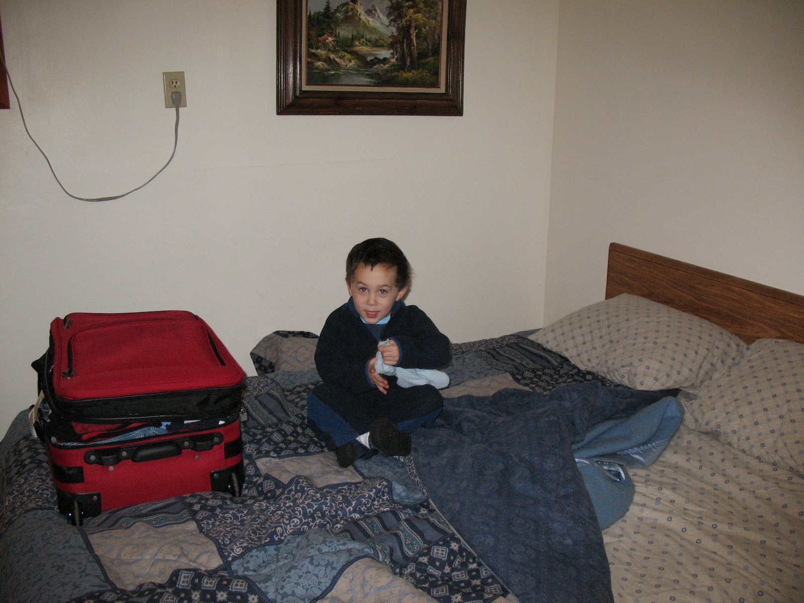 We spent Sat night in Seattle with my parents at the Red Lion. The boys thought going out to IHOP and having breakfast for dinner was a great treat and then we came back to the hotel and watched Monsters Inc. Got the guys to bed early since we had to get them up at 3:30am to get to the airport in time.
