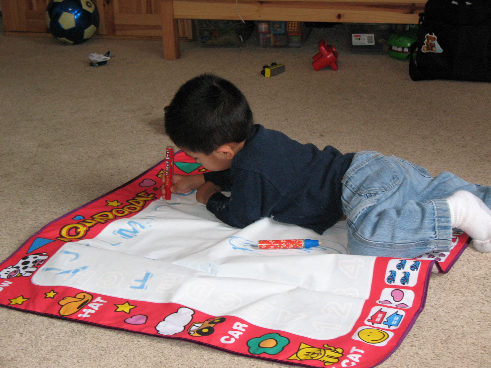 So we had a busy day…Alice and Jefferson were here, Levi and Alice had school and Nevaeh went on a visit. While the others were gone, I took Carlos, Trey and Jefferson to the Kid’s Museum and they ad a great time playing with all the golf balls in the physics display and we did a little art. Did some paint with water at home and played outside some, too. I even got the lawn mowed at naptime! Levi is fasting (claiming to eat anything but snacks…HA! he’s in for a shocker when he doesn’t get snacks)…Carlos is slapping people…Trey is screeching. That was my day.