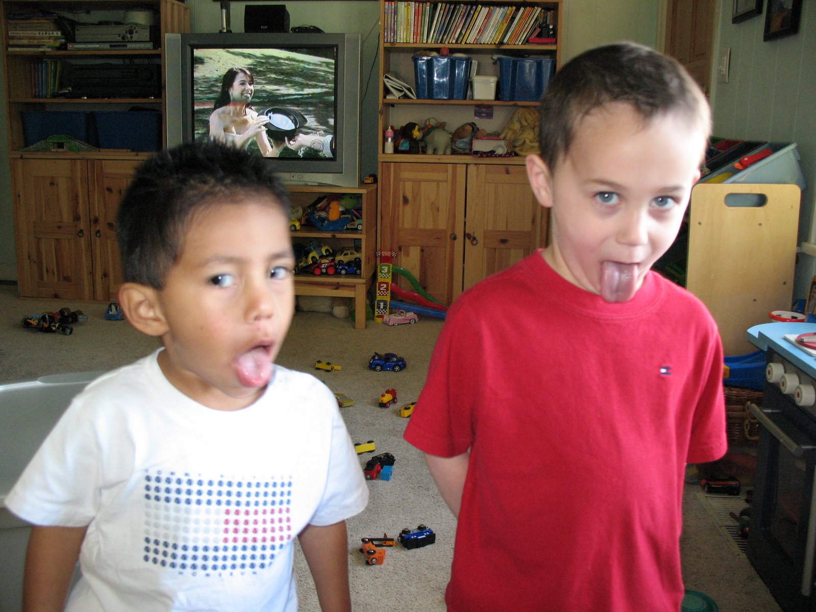 When I got home, Carlos was just finishing up with his speech lady, then we got the kids up and ready to go and went and saw Shrek the Third with Mary and Alice and Holly, Maddie and Gabe. Then we came home and Mary went off to bellydancing lessons while we had pizza with Holly, Maddie and Gabe. It was a fun night for sure. Sorry about the balloons, Holly! 😉