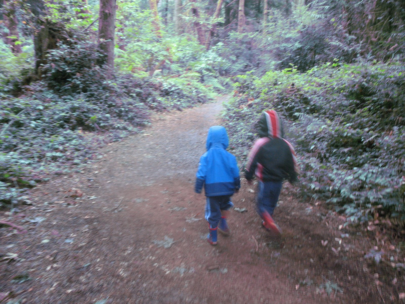Dee and I have been working the last couple of months on making our lives more simple but better. We’ve freecycled a LOT of clutter, gone through everyone’s clothes and toys and got rid of what isn’t played with or was outgrown. We’ve also started walking each night with the boys. We’ve been to the Grand Forest (they LOVE the huckleberries) and to Battle Point (where they chased bunnies) so far. They love going on walks and Dee and I get some much needed exercise. Come join us if you want, it’s always an adventure!