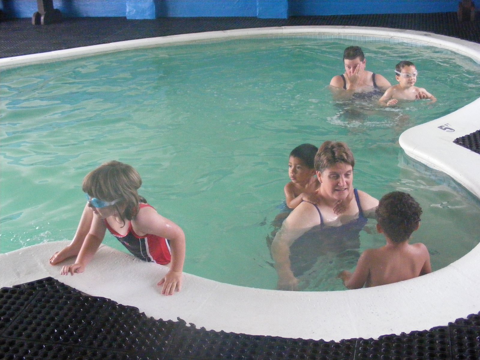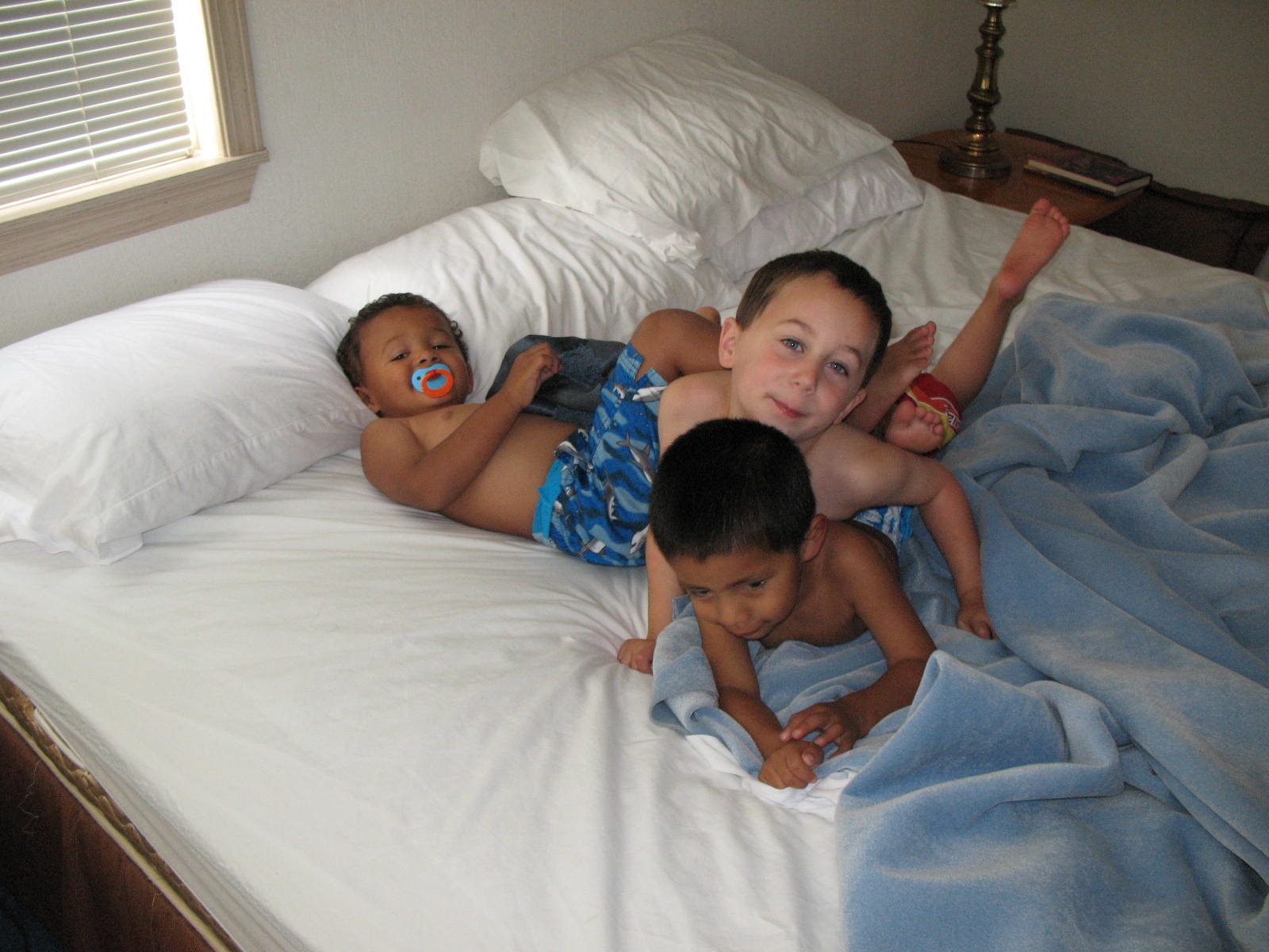Anyhow, we got up this morning and Linda and the girls, and Papa B and Sandy came out to go swimming. Papa and Sandy didn’t swim, but Linda and the girls did and we had a great time. This time Trey went under as well as Carlos. Don’t know what it is about this pool but we were right there both times and grabbed them up real quick and they both kept swimming so all’s good. We got back up to the room to change and Dee said, “You know, I don’t want to leave today…I’m not ready.” So we made some calls and got the jobs taken care of, the dog watched one more day, speech postponed for Carlos and a call into the pool to cancel swimming lessons tomorrow. We even got to stay in the same hotel room. Great decision, we were having so much vacation fun and not ready to return to the daily grind. I know the boys are just going to lose it getting back to daily life.