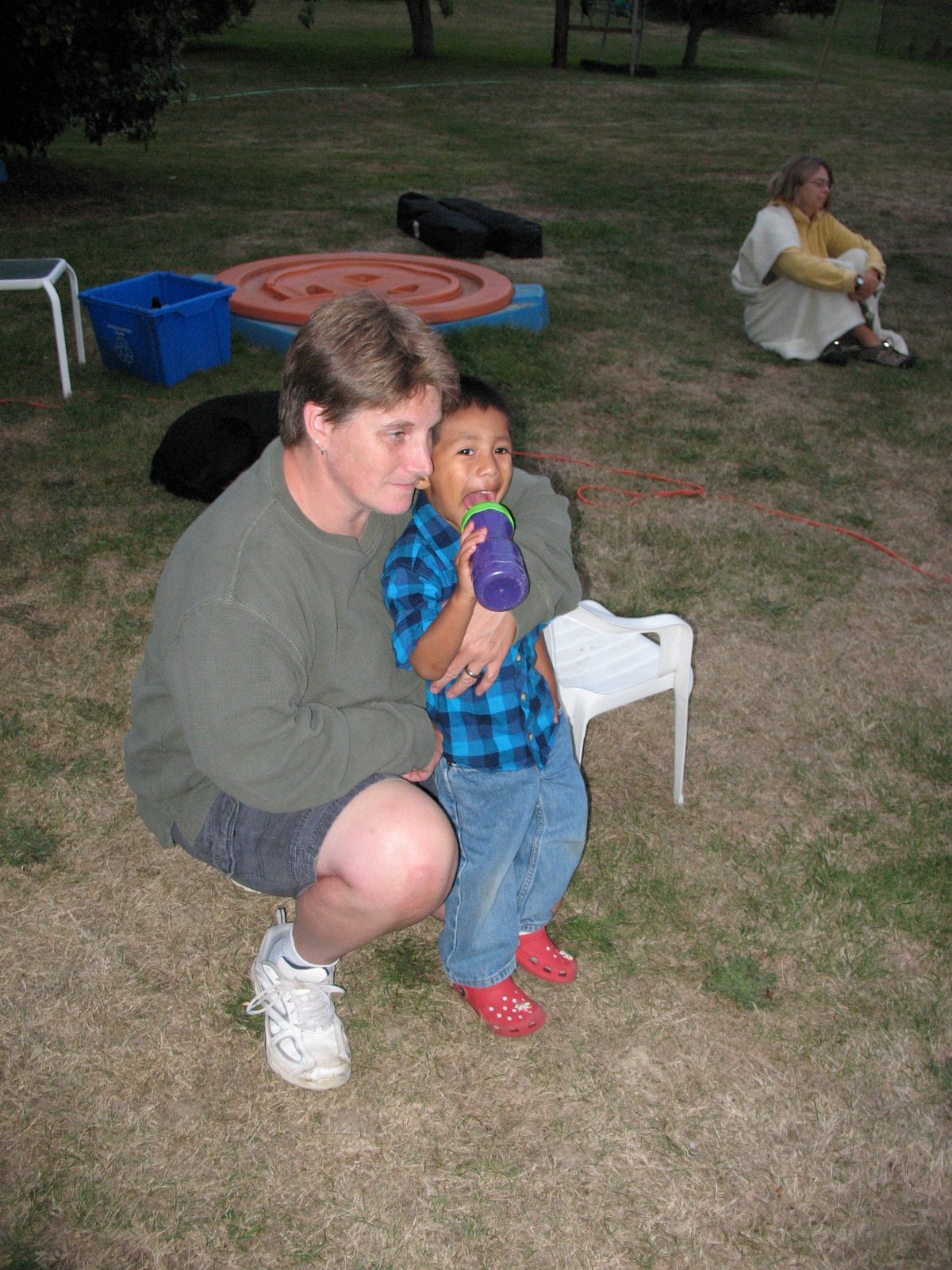 Back to naptime. Carlos was a nightmare. If anyone has ideas on how to get a 3 year old to sleep then please fill me in. It was more than a battle. We were trying to get the boys all to sleep early because we were going over to Patti’s retirement party at 2. Carlos was in our room singing and laughing and grinning whenever one of us would go into the room. We left the front door open, Dee was working on the deck and I went out to mow the lawn. I came in periodically to check on our non-sleeper and each time, of course, he was still awake. I finished mowing, brought a load of laundry up only to find that my sweet young son had locked the back door. I wasn’t happy but went around to the sliding door and found that he had locked that one, too. I banged on the door and he finally let me in, all the while grinning ear to ear. Turns out he never did take a nap, so he learned a hard lesson and was dropped off and the Fisher’s house while we went onto Patti’s party. Yea, he was pretty shocked to be dropped off, that’s for sure. This boy needs some definite wake up calls. Anyhow, I eventually picked him up from Fishers and joined the party again and he slept in the car and awhile at the party, it was great to see everyone and celebrate Patti’s retirement.