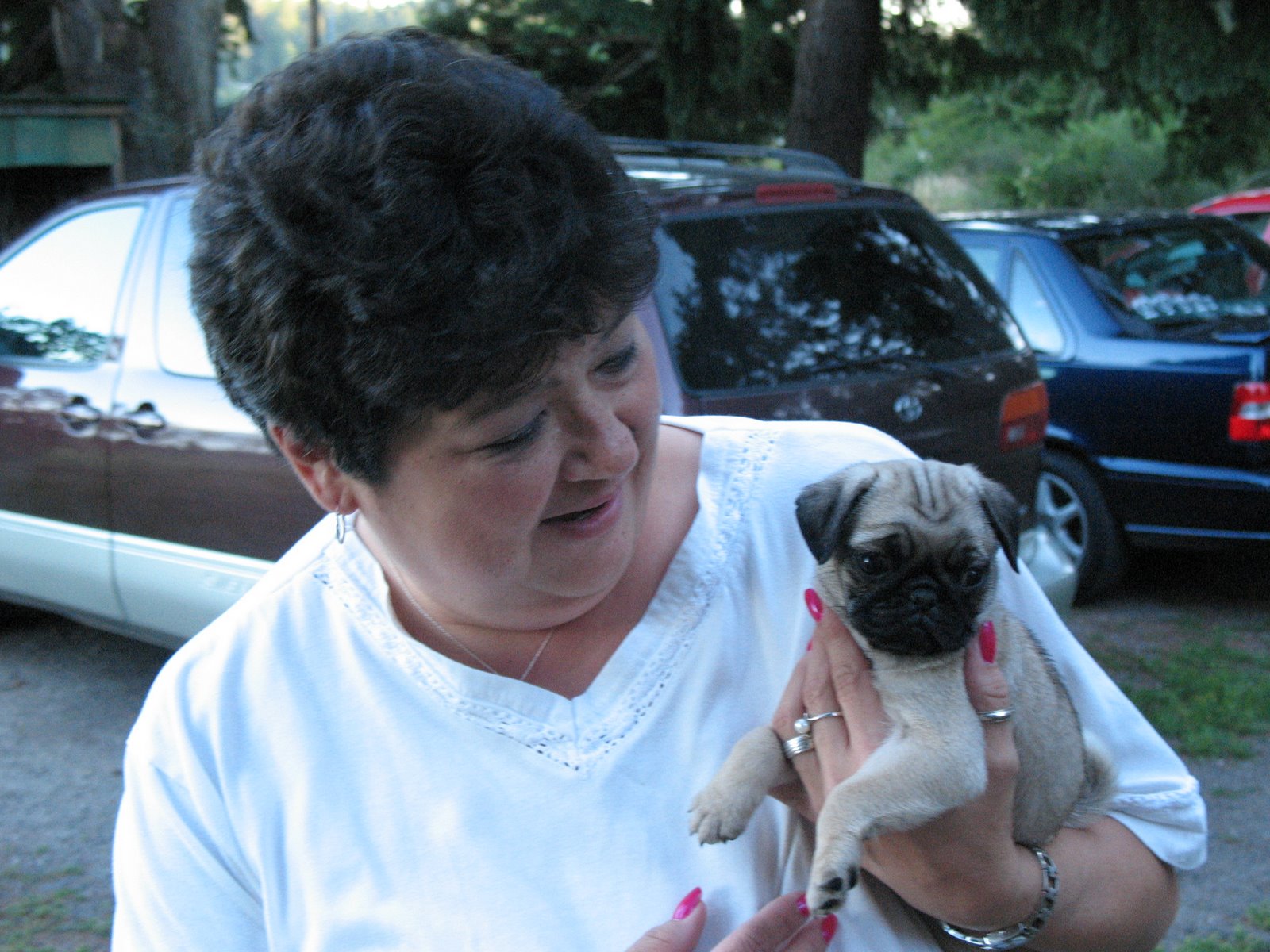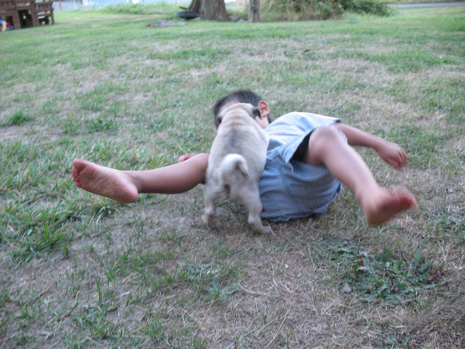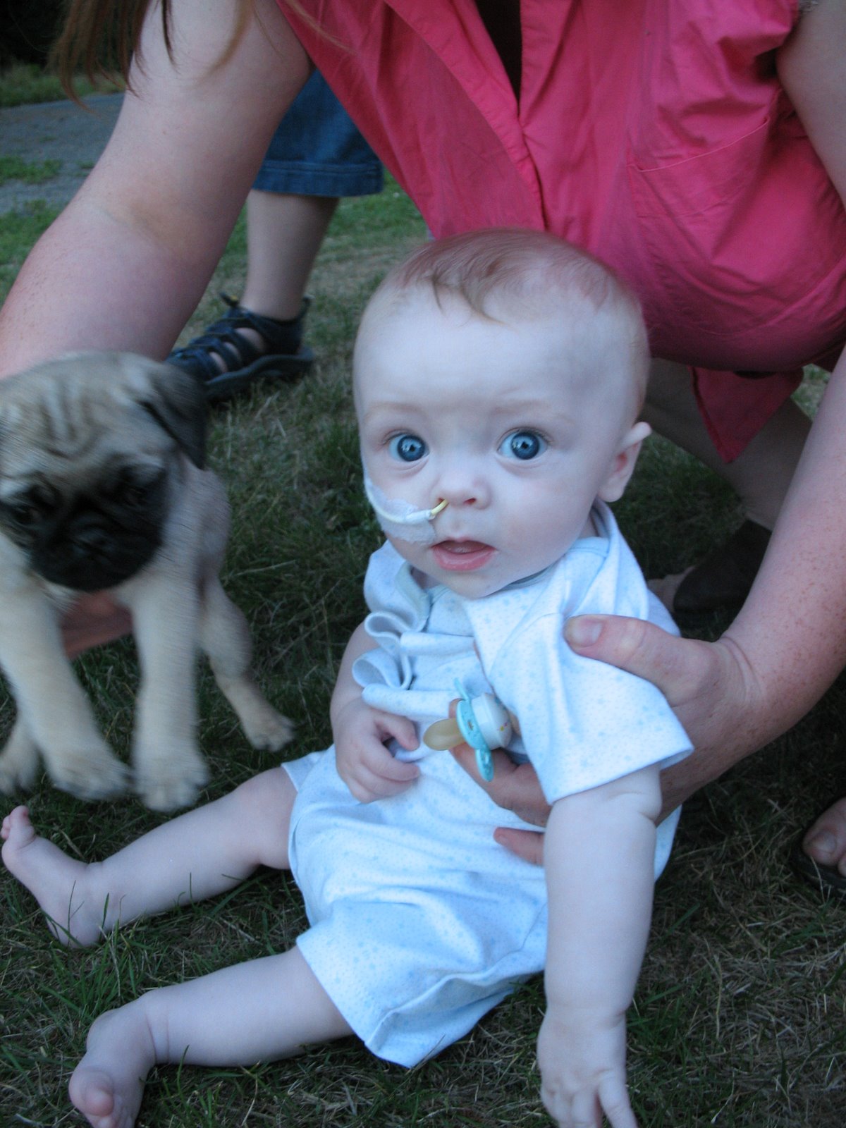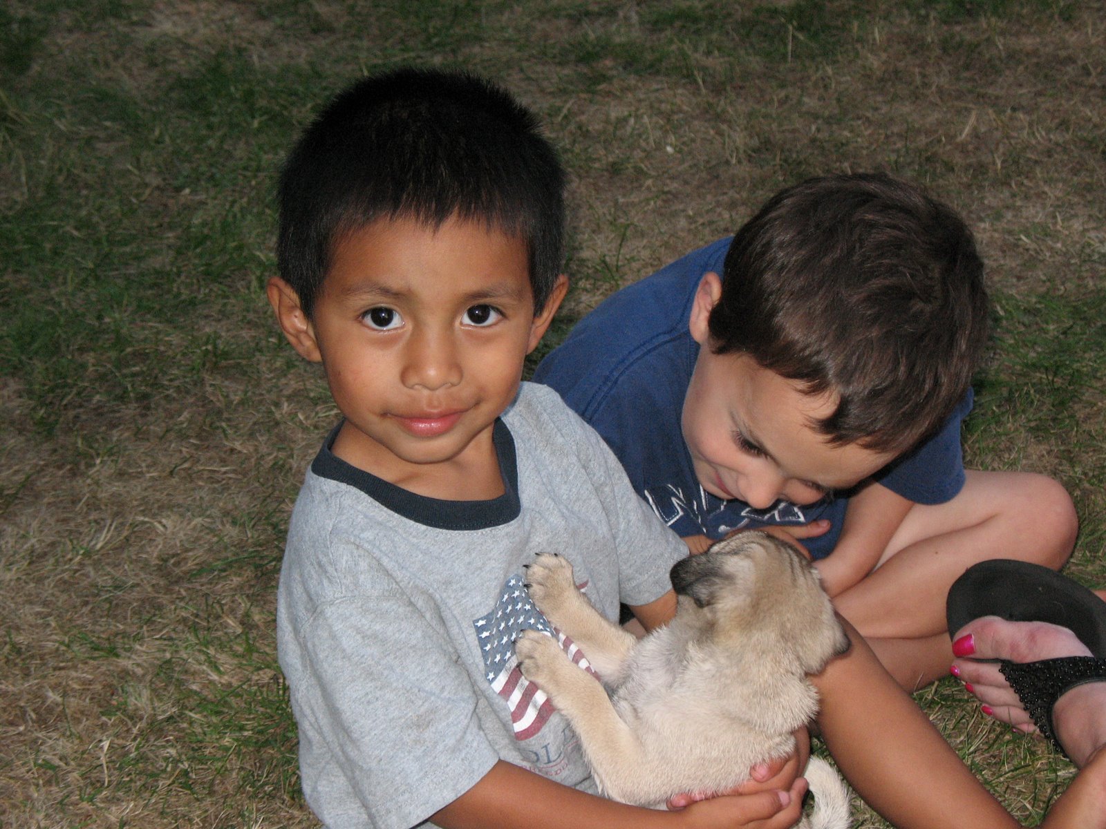 Patti and Jeanie got a new puppy! She doesn’t have a name yet, but we got to meet her tonight. Levi and Carlos let her climb all over them and they giggled and giggled. Levi loved when she would lick his face and even thought it was funny when she nipped at his nose. She knocked Carlos over!