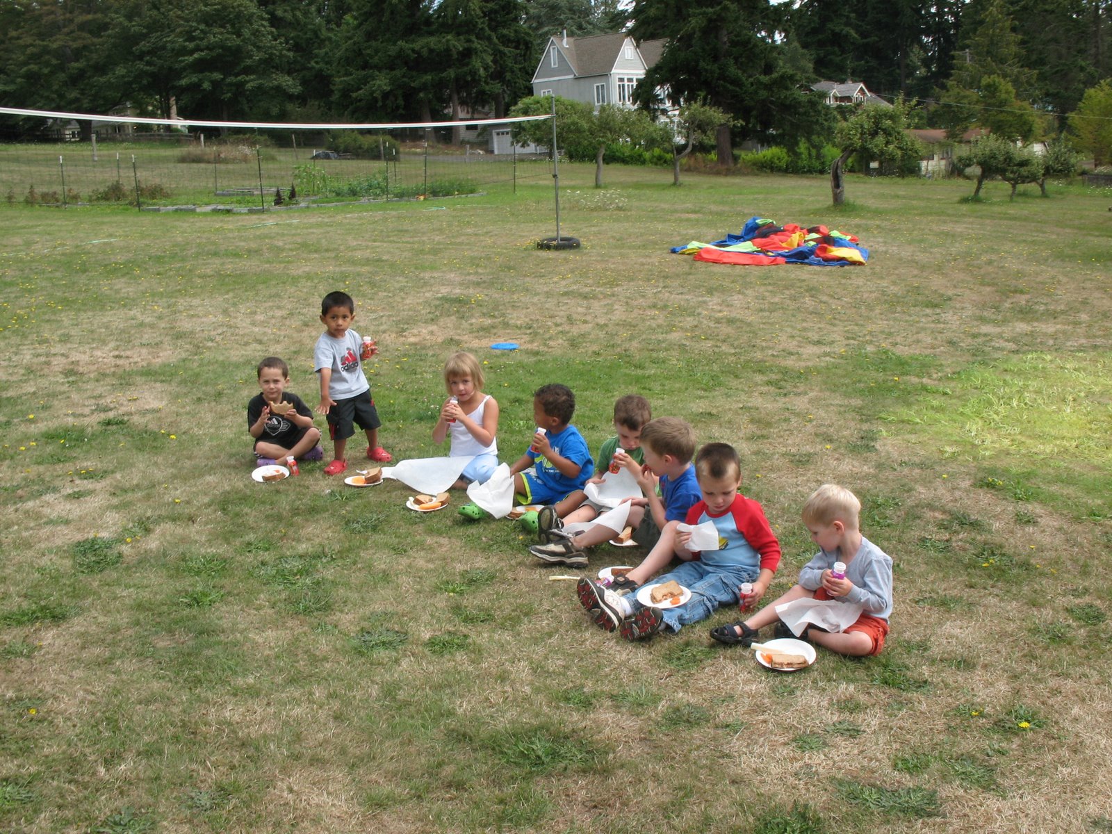 What a treat today…we had a visit with some of our friends from our old playgroup (PCC). I made up PB&J for the kids and they all sat down in a row and ate. It was cute, couldn’t believe they were all mellow for long enough to go in and get the camera and get a photo! It was great to see Jani, who moved to St. Louis. She’s been such a mentor to me and I miss her a TON. The visit was short, but I was touched that she made time to see us. I’m hoping we’ll see her again soon.