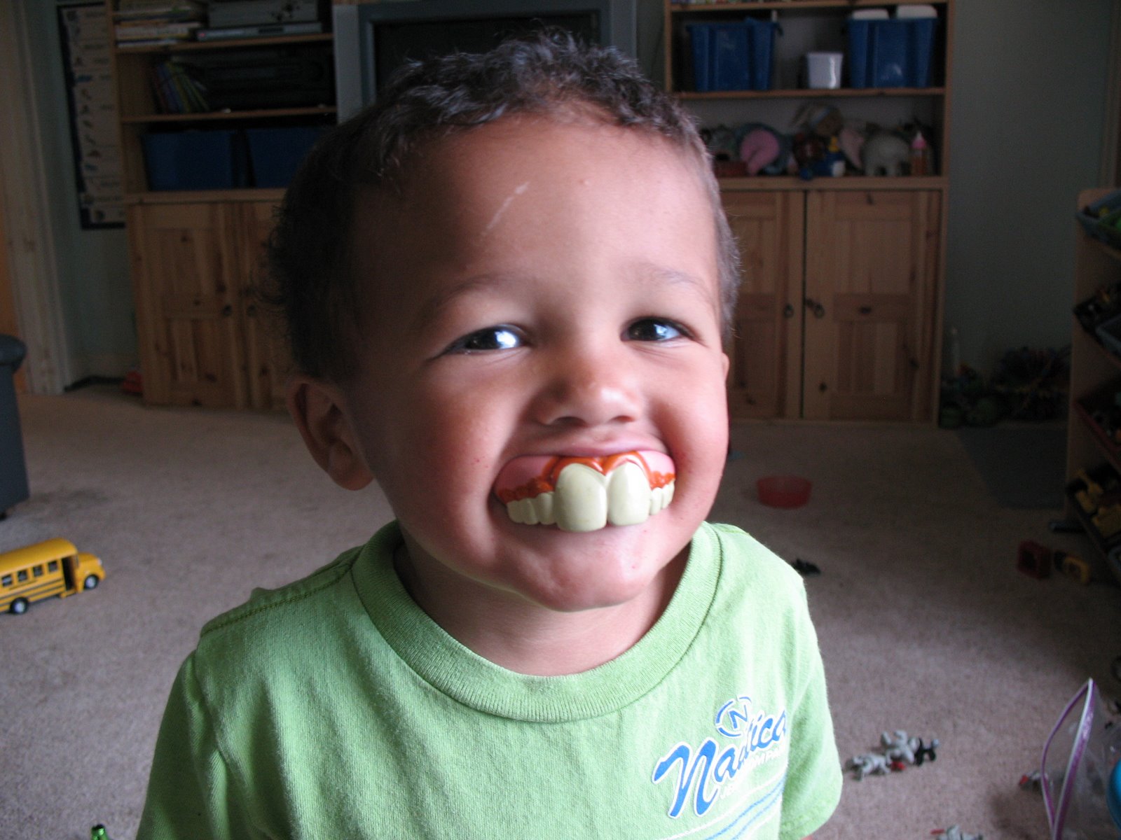Oh, and the first two pictures are from when Holly, Maddy and Gabe were over for dinner. We put our friends to work…pull that wagon! And Trey with the goofy teeth. Nice.