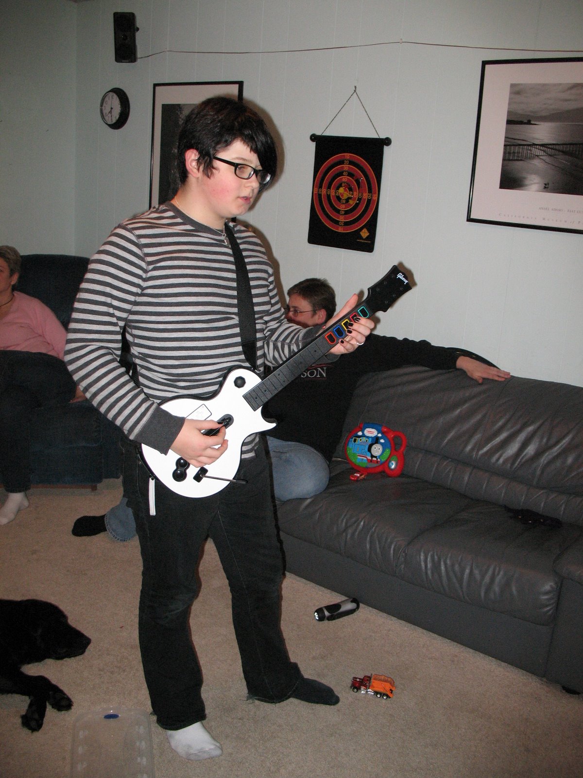 Yesterday was the Island Invite wrestling tournament that I have done computers at for the last 17 or so years. It’s fun, it’s a day to hang out with adults and watch some great wrestling. Levi came with me in the morning and I took him to an “I Spy” art class that he loved. He made some great I Spy art with lots of glue and cool gadgets. Dee picked him up from class and hung out with the boys, watching the Seahawks game (LAME!!!) and playing Guitar Hearo (our new obsession).