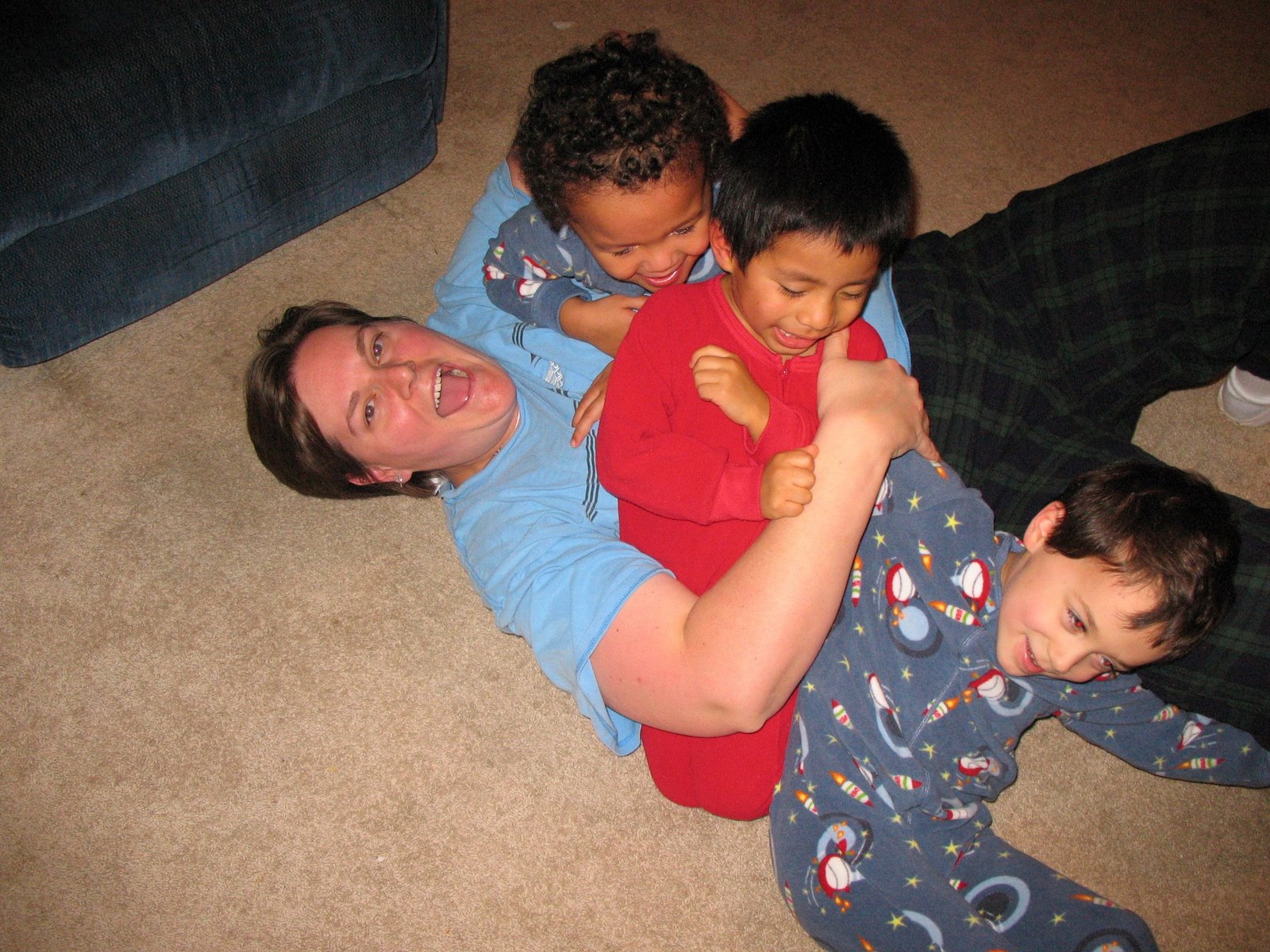 Lastly….we wrestle each night, the whole fam damily gets on the floor and rolls around! It’s fun for all of us and time Dee and I truly love with the little guys.