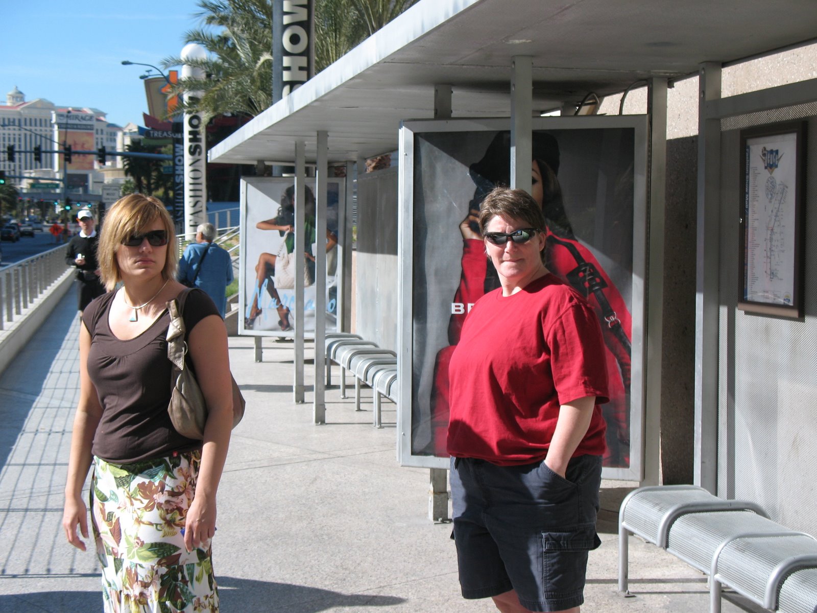 We took in a lot of sights, and our feet paid the price and were throbbing with the miles of the strip that we continued to walk. Vegas is deceiving, as all the hotels look so close but once you start walking you realize that they are, in reality, miles apart. The buildings are so massive you completly lose perspective. Just across the street ends up taking 20 minutes to walk. Our feet took a beating, that is, until we bought a pass on the “Deuce” which is the city bus that runs 24 hours a day up and down the strip. We joked around because each time we got on there was their slogan piped over the intercom, “Have fun, ride the Deuce” and we certainly did. There were interesting people on each trip and the drivers were wanna-be comedians as well. One trip we had a French family with two young children in front of us and it was cute to hear the little boy singing the Itsy Bitsy Spider in French.