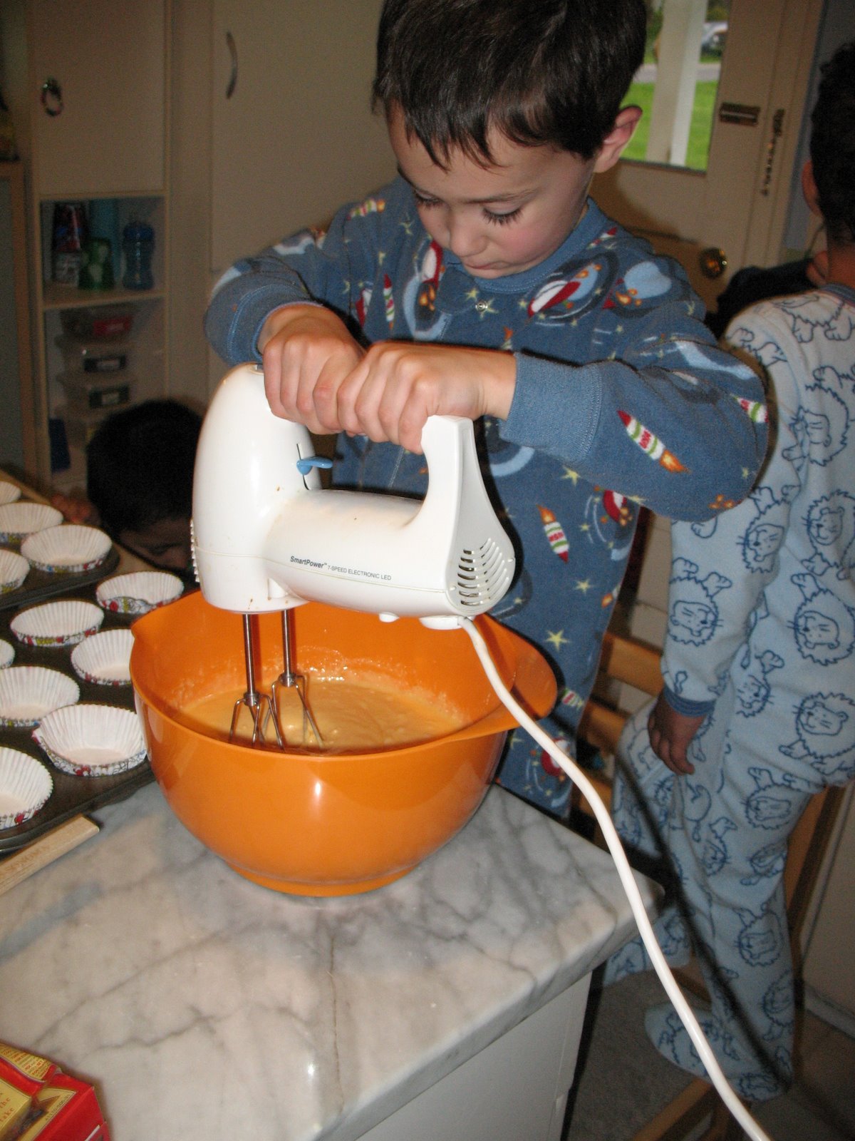 Came home, Carolyn brought some KFC (yum!) and we made orange cupcakes for Levi to take to school in the morning.