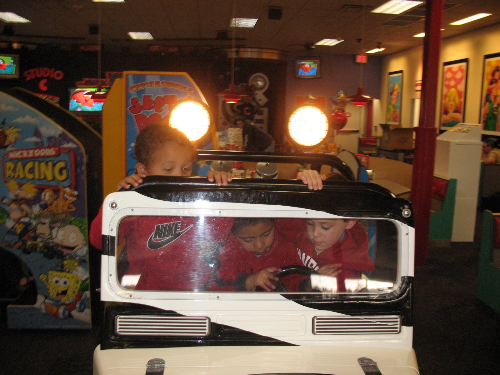 Levi wanted to go to Chuck E. Cheese to celebrate his birthday so we had to do it a day early to make it work out. He didn’t mind! Nana and Papa joined us and Levi showed Papa all of the cool games to play. Trey was star struck by “Chuck E.” coming out and high fiving him, he just loves that rat. The picture of the boys in the jeep cracks me up…we are going to have issues with Carlos behind the wheel!