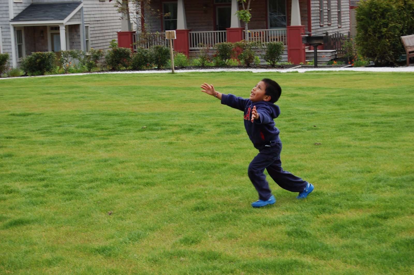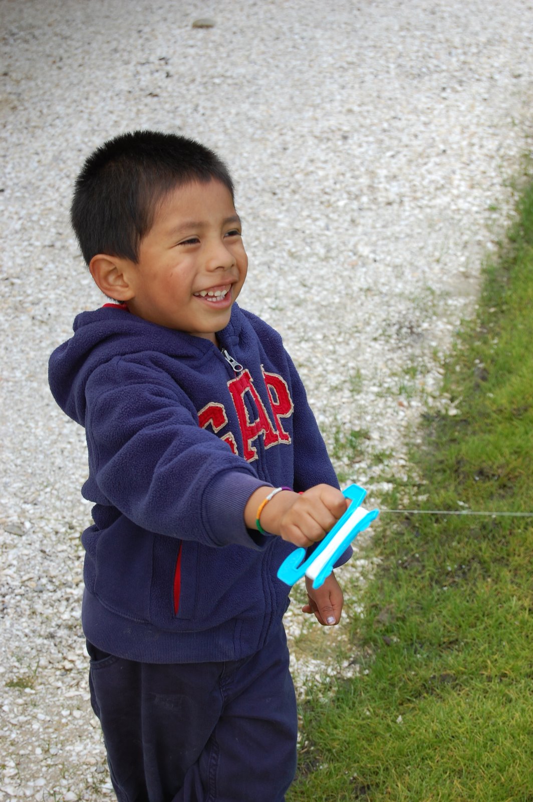 We brought the boys each a cheap kite to fly, they were different because instead of having tubing to make the frame, they were inflatable. Good idea, in theory. One of the kites didn’t hold air so it was a dud, one of the kites insisted on flying upside down so it was a total loser, but the Mikey Mouse kite was champ and flew and flew and flew. The wind here wasn’t consistent so