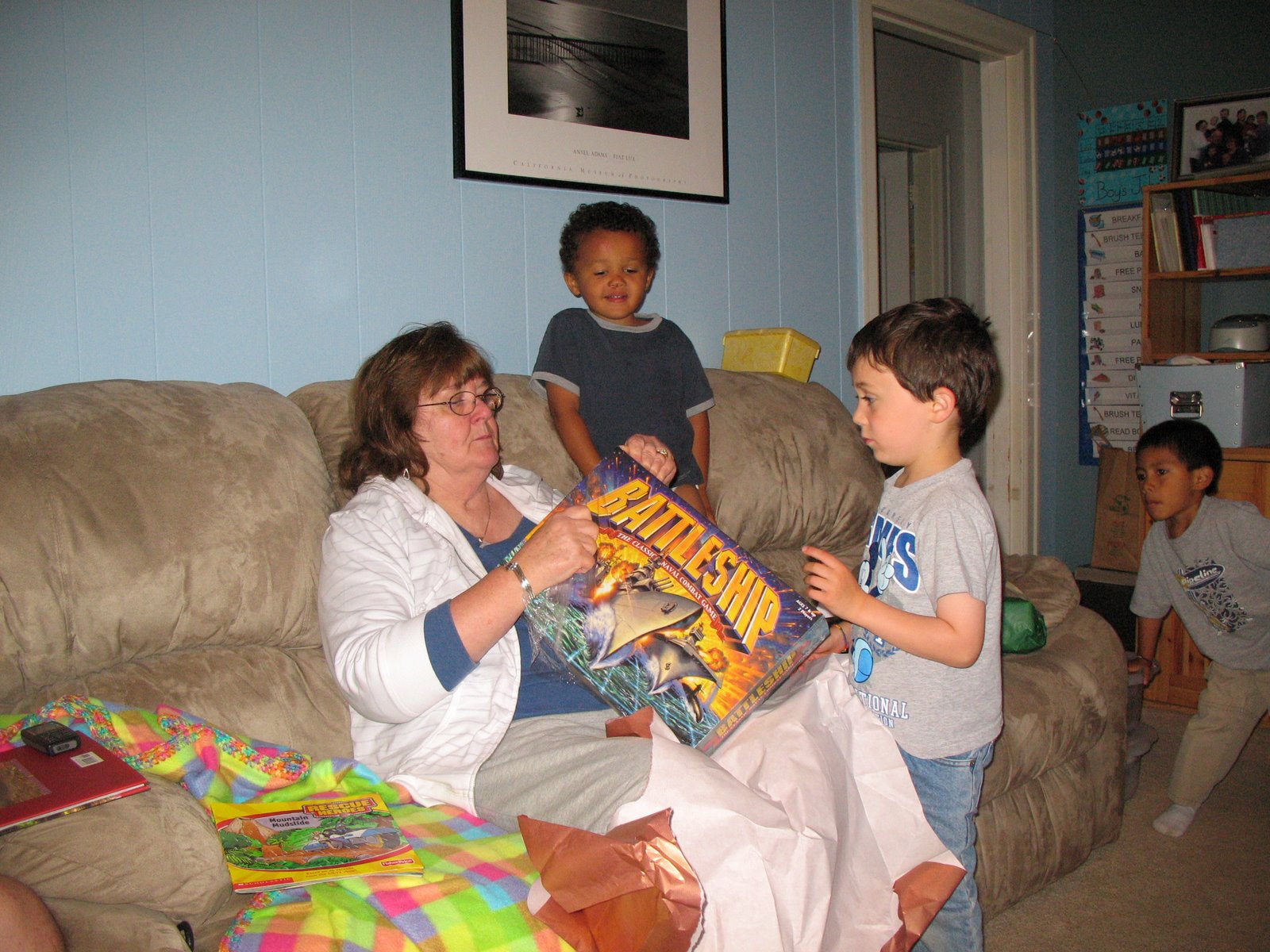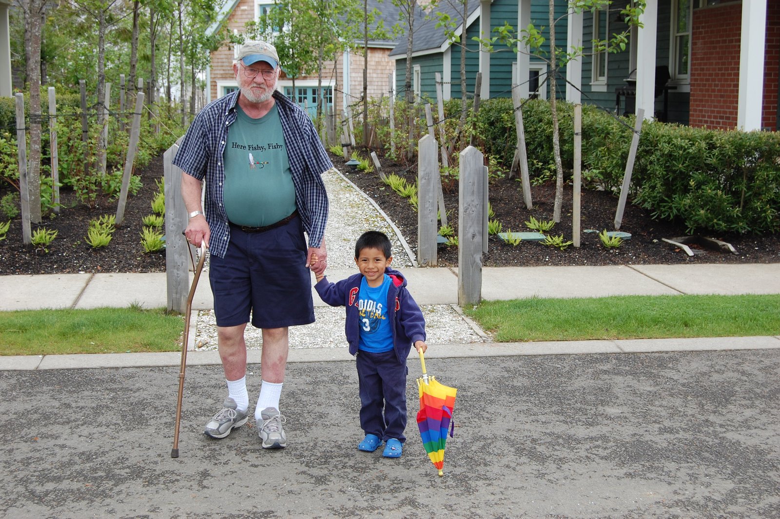 We’re at the ocean with Nana and Papa and the house is amazing and we’ve had some time to wind down and just relax, what a treat! . The boys were excited to play Battleship and “help” out with putting in the pegs. We went on a walk to the playground and Carlos used his umbrella as a walking stick so he could be just like Papa. We played some football and checked out the playground. Trey took a nap with Nana and Papa while Dee and I hooked up the bike trailer and rode the bikes around Seabrook to check out the houses. Let me tell you…those boys are heavy to haul around and it was me doing the hauling because the trailer hooked onto the pink bike. Dee wasn’t about to ride a pink bike!