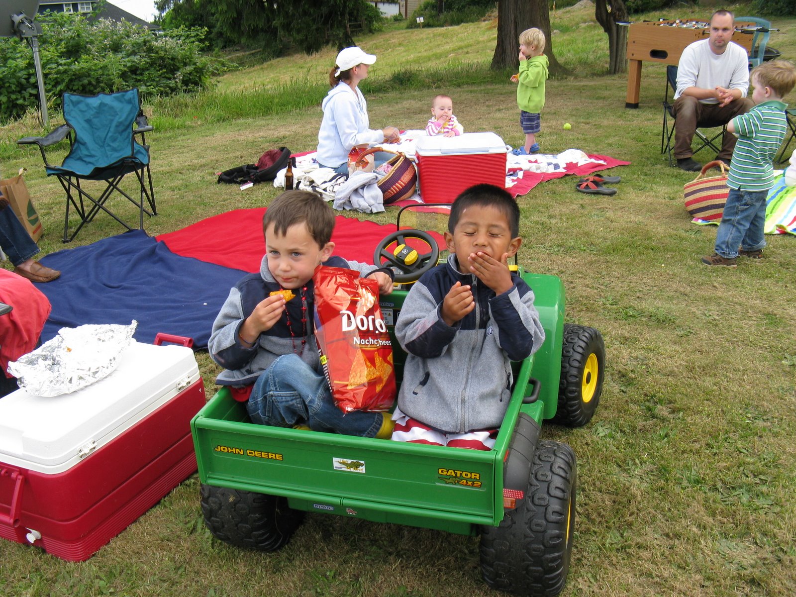 I did take all the kids to their last swimming lesson yesterday morning….yippee…no more sitting in chlorine fumes for an hour then trying to dress slippery, wet, uncooperative children afterward! Since Carlos didn’t get to swim due to a technical error on the pool’s part, and Dee was home yesterday afternoon, I took him to swim after nap. He was jazzed to have some one-on-one time, even though he is not a fan of the pool. We had fun and even got a treat of Swedish Fish afterward!