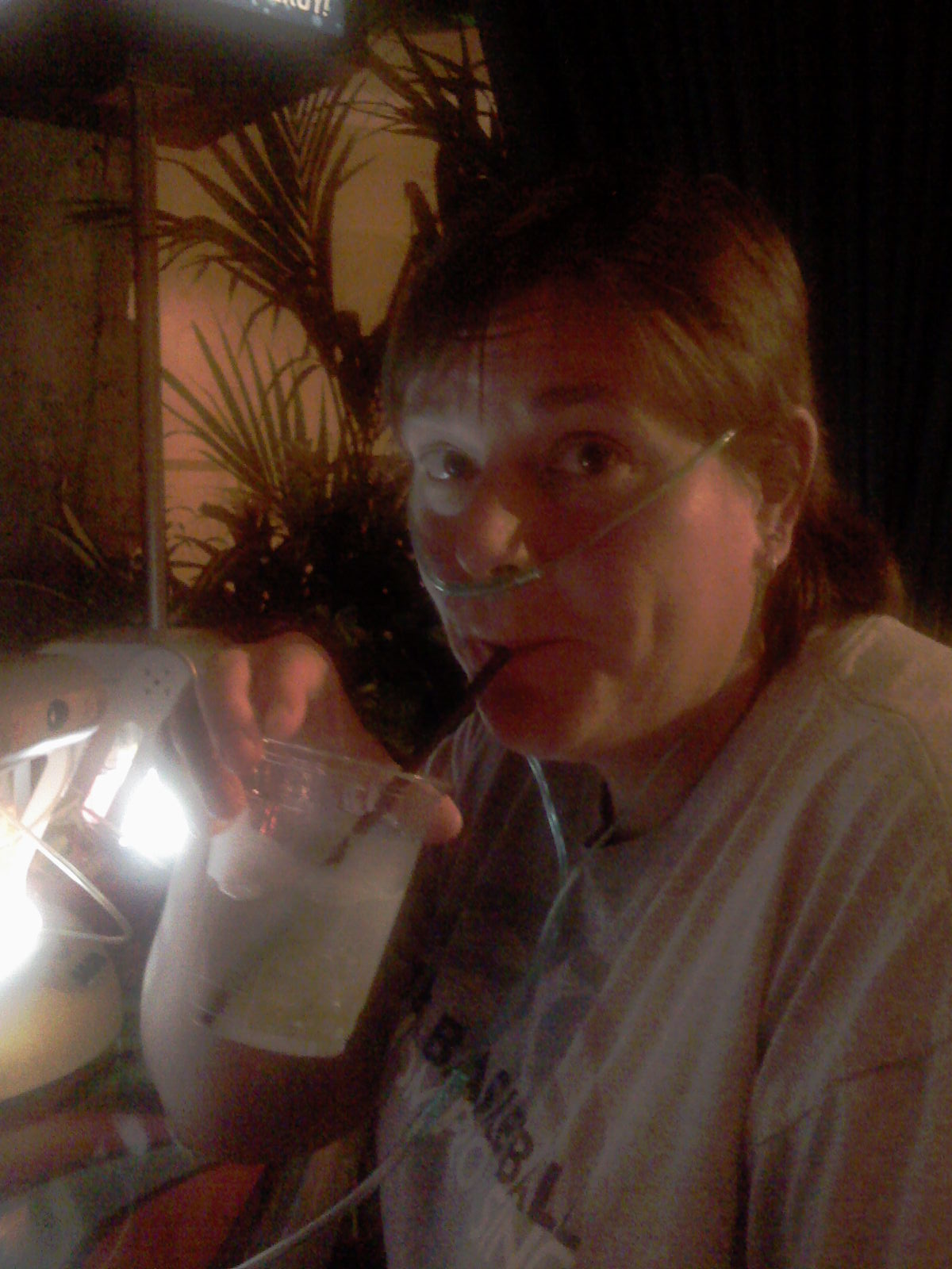 Fun at the oxygen bar, with a monster/vodka drink and a massage.