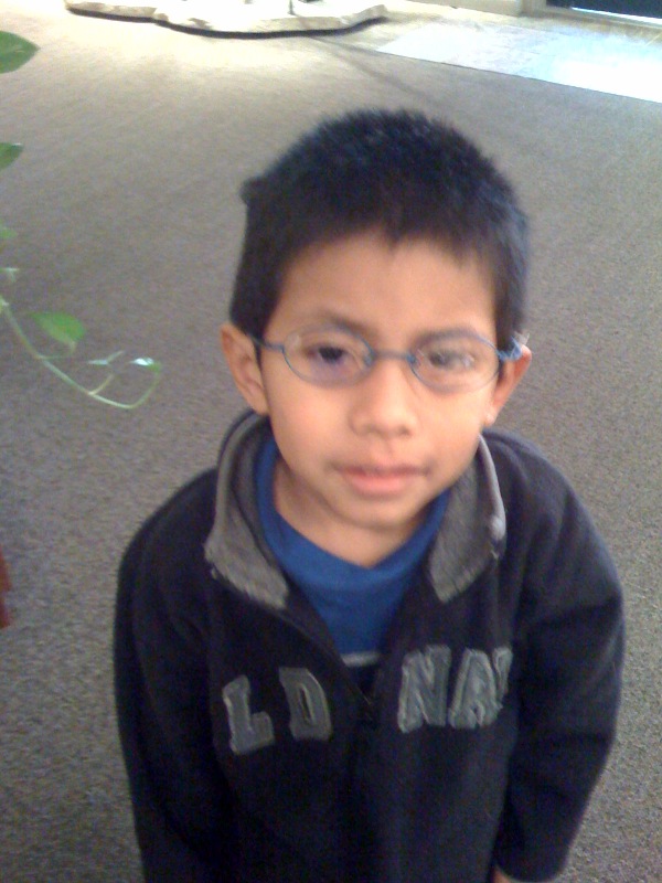 It’s a blurry picture, but you get the idea…Carlos went in for an eye exam today because he’s near sighted. We thought that he was going to need glasses but it turns out he’s safe for another year. He would have looked pretty darn cute in them, though. He’s our scholar for sure and can’t you just imagine him in his tie and penny loafers with glasses????