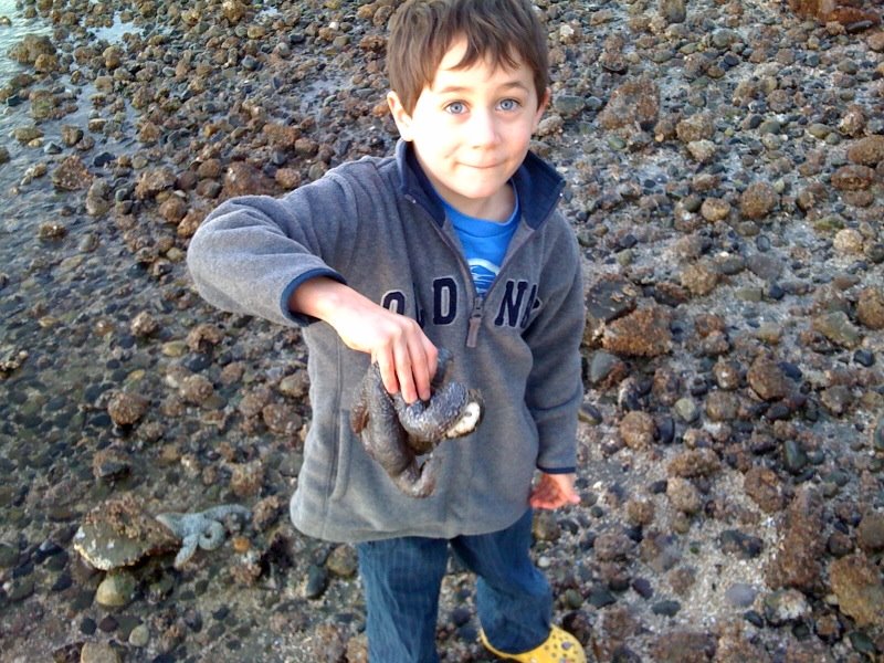 We didn’t have much luck with the fish, but we did bring up a few rock crabs and the boys always love that. Sandy was doing some beachcombing and wanted to bring home every shell she could find and we reassured her that our beach has tons of shells to collect as well. That will be the morning’s project. Levi found a bunch of starfish and couldn’t believe how strong they were as they held tight to their rocks. Sandy wanted to take those home, too!