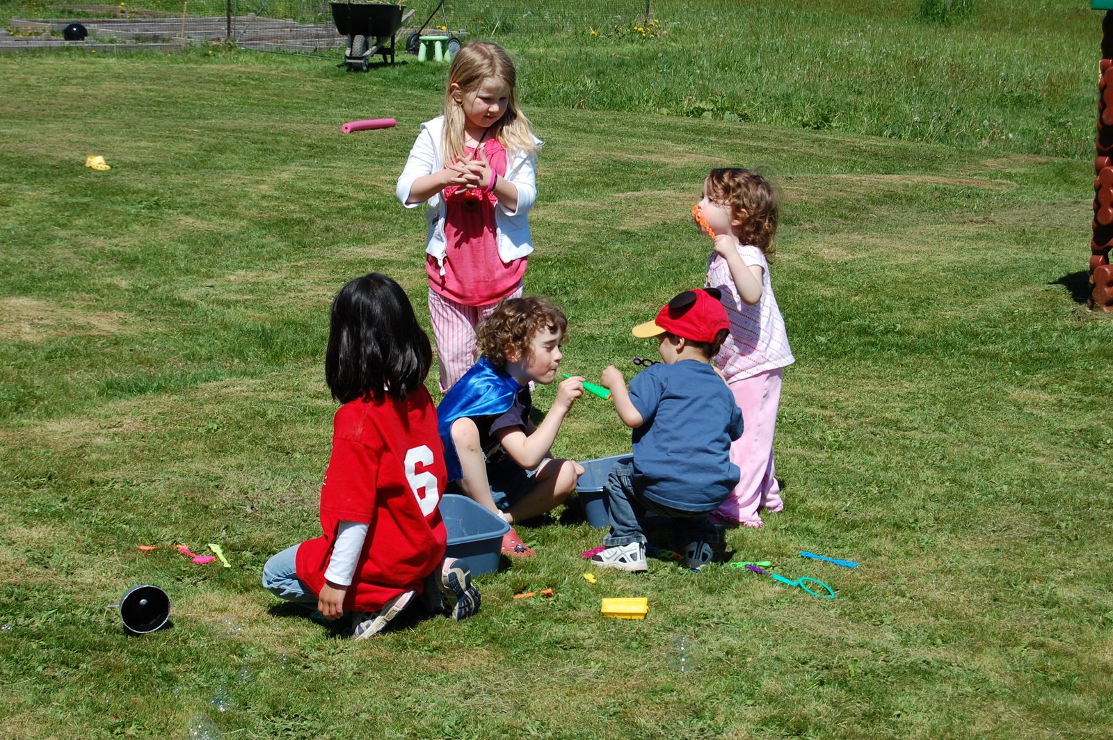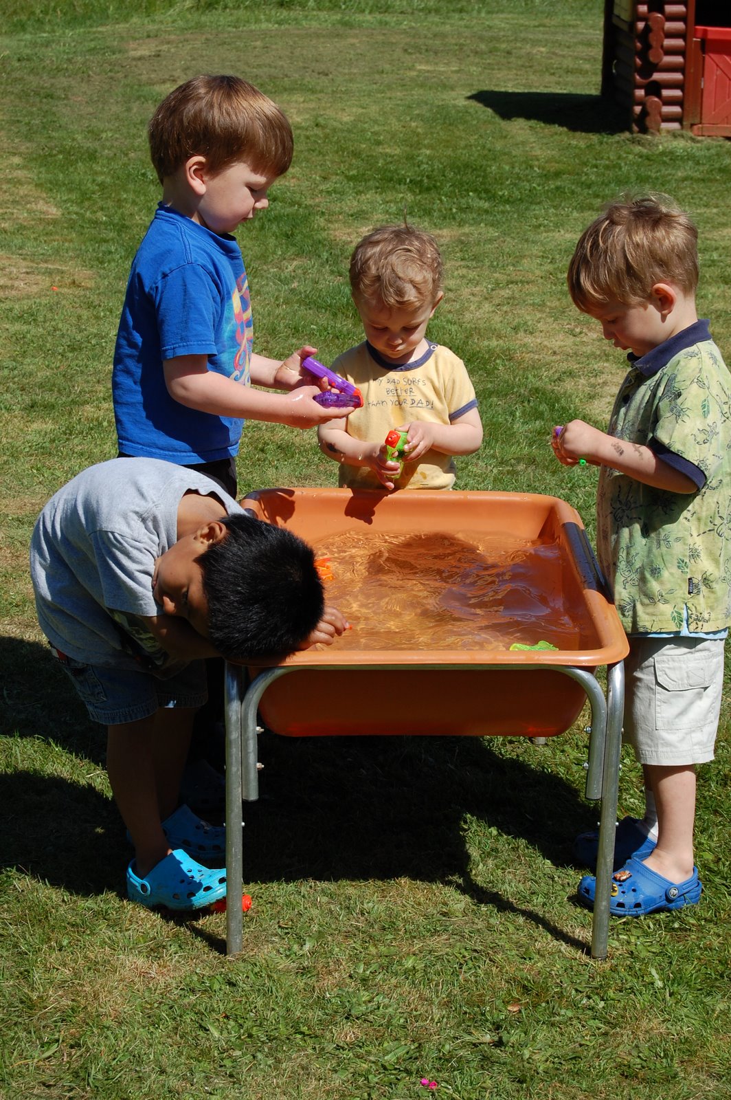 It was a free for all…28 preschoolers running around in the yard…yeah, 28! There were a couple older/younger siblings in that count but for the most part the kids were 4-6 years old. What a blast. The biggest hit was the squirt guns and water balloons. Did you know that 50 water balloons + 28 kids = gone in about 2 seconds? It’s true, that’s the reality. Seemed like so much more when I was filling them up. The squirt guns provided hours of entertainment and we have a perfect yard for lots of kids to be doing lots of things. The sun was shining and everyone had a ball so it was a success! Carlos is also now “in love” with a little girl named Sammy, she spent most of the afternoon doing his hair….and he doesn’t have much hair but he sat there and was great with it.