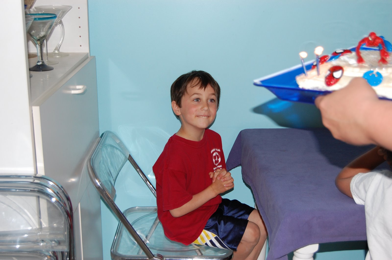Some pictures of Levi’s birthday…he had a great day with Nana (what fun!). For his birthday dinner he chose hamburgers and hot dogs, Cheetos (a rare treat) and cake. Dee also grabbed a pineapple, Levi’s absolute favorite fruit. Mary and Alice joined us for dinner and cake, too. I love the picture of Levi about to get his Spiderman cake. We were singing and all and his grin couldn’t have been bigger. He got lots of cool presents, a new stuffed animal, a Transformer, a submarine, a REAL watch and a bunch of Spiderman stuff. Levi was so appreciative and excited for each gift, I think 6 is going to be a wonderful year for him.