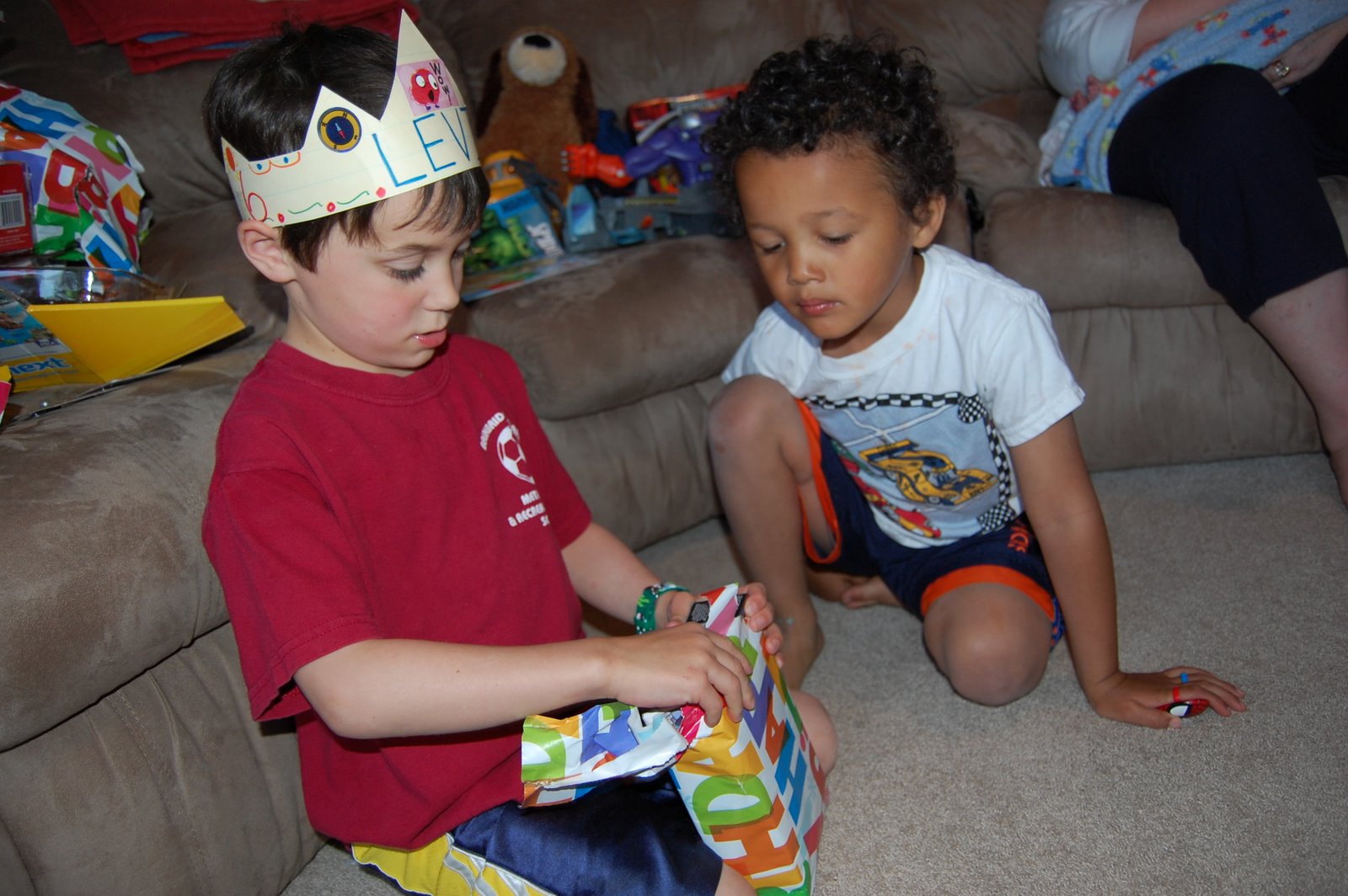 As you can see from the last picture, it was tough for Carlos to have Levi opening all the presents. Cute picture, though and his birthday is in a couple weeks.