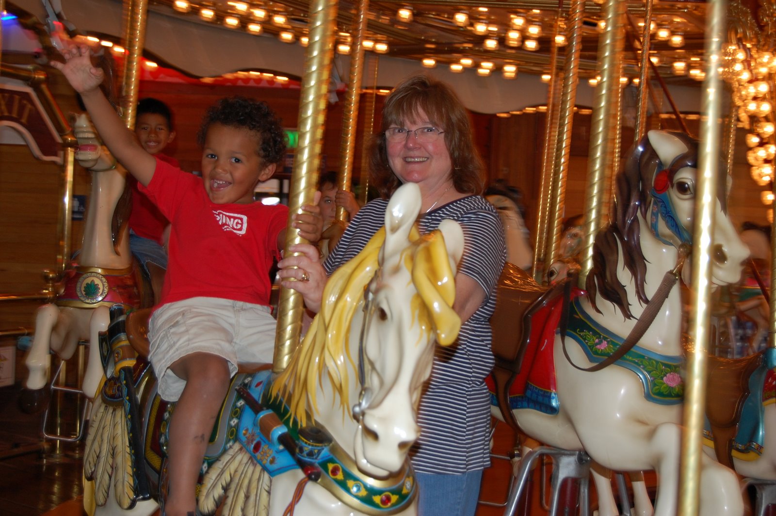 Nana spoiled her guys with a trip on the Merry-Go-Round and some ice cream before we headed home. We had stopped into a Seattle souvenir store that has some cute stuff and Carlos found a mini tape measure that he HAD to have. Only problem was, he didn’t have any money and I wouldn’t buy it for him (ya can’t always get what ya want). Leaving the store without the tape measure lead to a 30 minute tantrum, which I’m sure all the ferry commuters enjoyed as much as I did. We’ll be heading back to the aquarium at the end of the month for a member’s movie night, so he’s got some time to work and earn the $2.50 he will need to buy the tape measure. We’ll see just how much he wants it if he has to work for it.