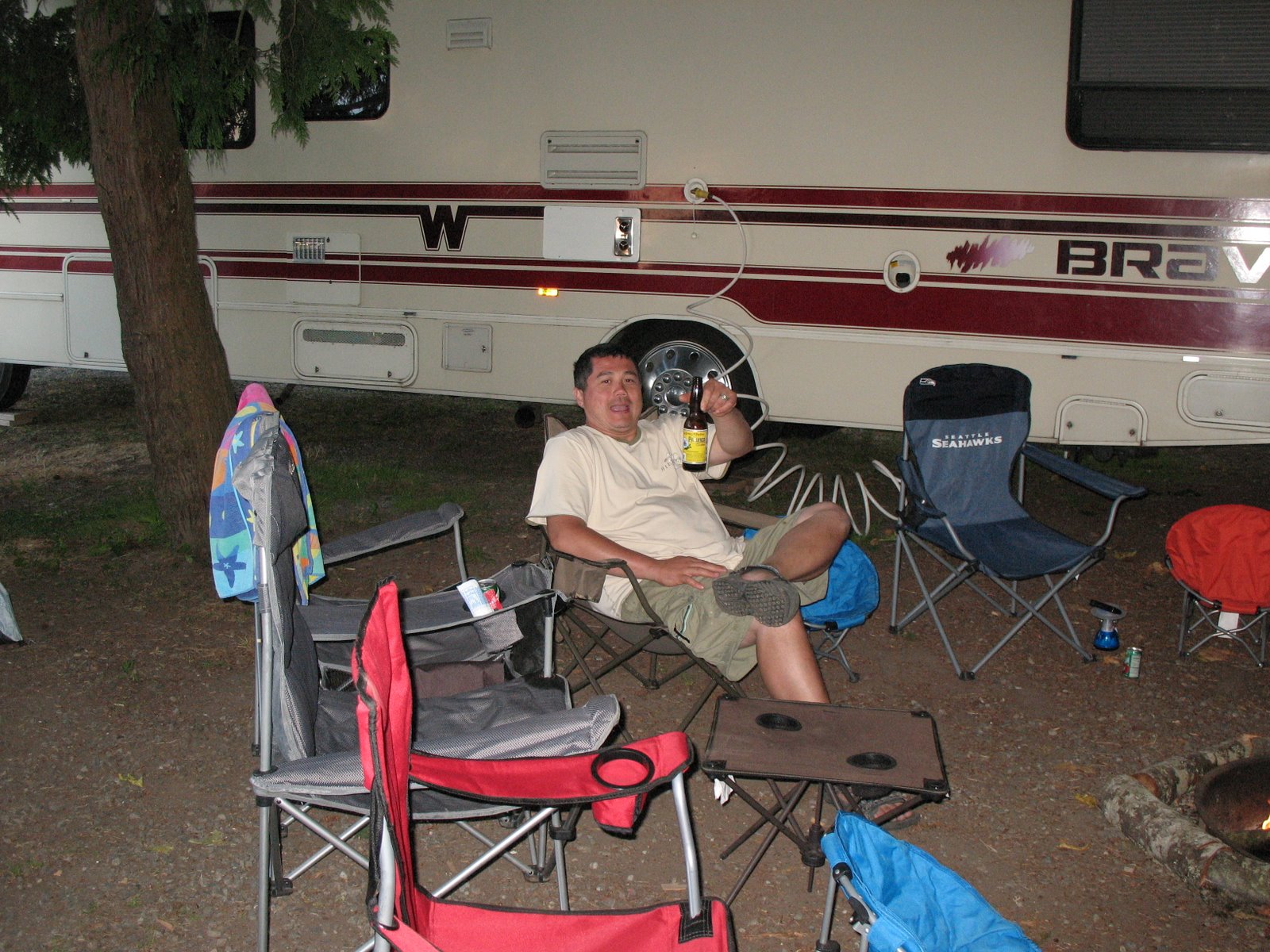 Went camping down at Fay Bainbridge with the Barnums and had yet another great time! Our families just seem to camp well together, the kids play and play and the adults get along well, too. That’s sometimes hard to find. This time we camped next to two sets of friends from the island, which was fun too. One of the nights, one of the teachers that subs at the boy’s school came down and Carlos made it his job to shower her with roasted marshmallows and he even got out his lantern and took her on a beach walk. It was pretty cute.