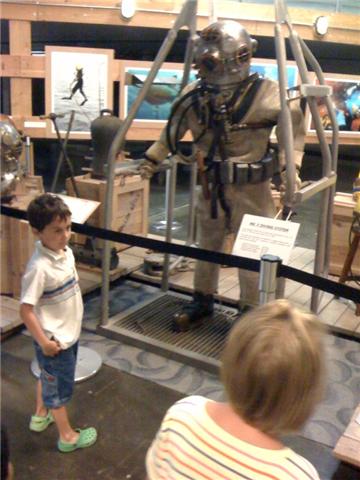 We loaded up the van this morning with the plan of going to see the free showing of Horton Hears a Who and then having a picnic at Lion’s Park. Well, you know what they say about the best laid plans….we got to the theater a little late and both movies were full. We made a detour to the Evil Empire (where I was accosted by a marriage=man+woman group who were trying to convince me that they were in support of my family…ha ha ha, not so much!) and picked up some strawberry and coconut flavored marshmallows for our camping trip this weekend. Then we headed out to the Keyport Naval Underwater Museum. What a fabulous find for our family, the kids had a ball and want to go back again. There was a dress up section, lots of torpedoes on display and the kids favorite part (by far) was the submarine control panel where they had periscopes and buttons and knobs galore. So much creative play for our little ones. The best part of all was that it was free, we’ll head out there again for sure!