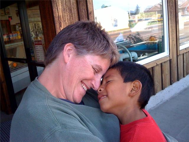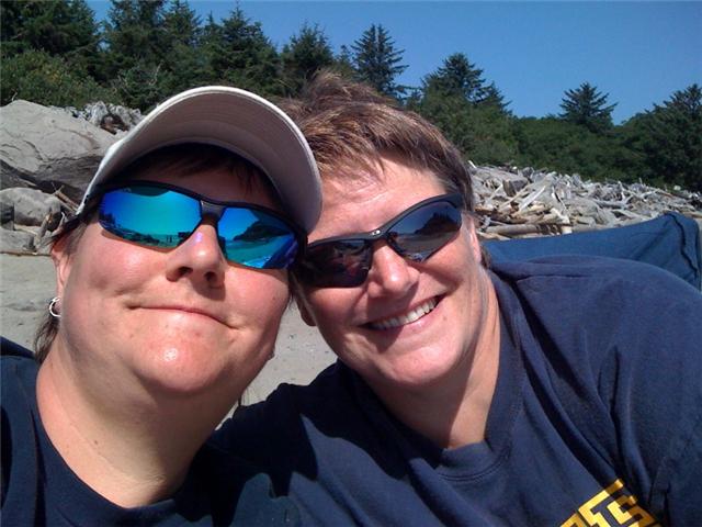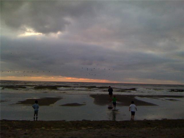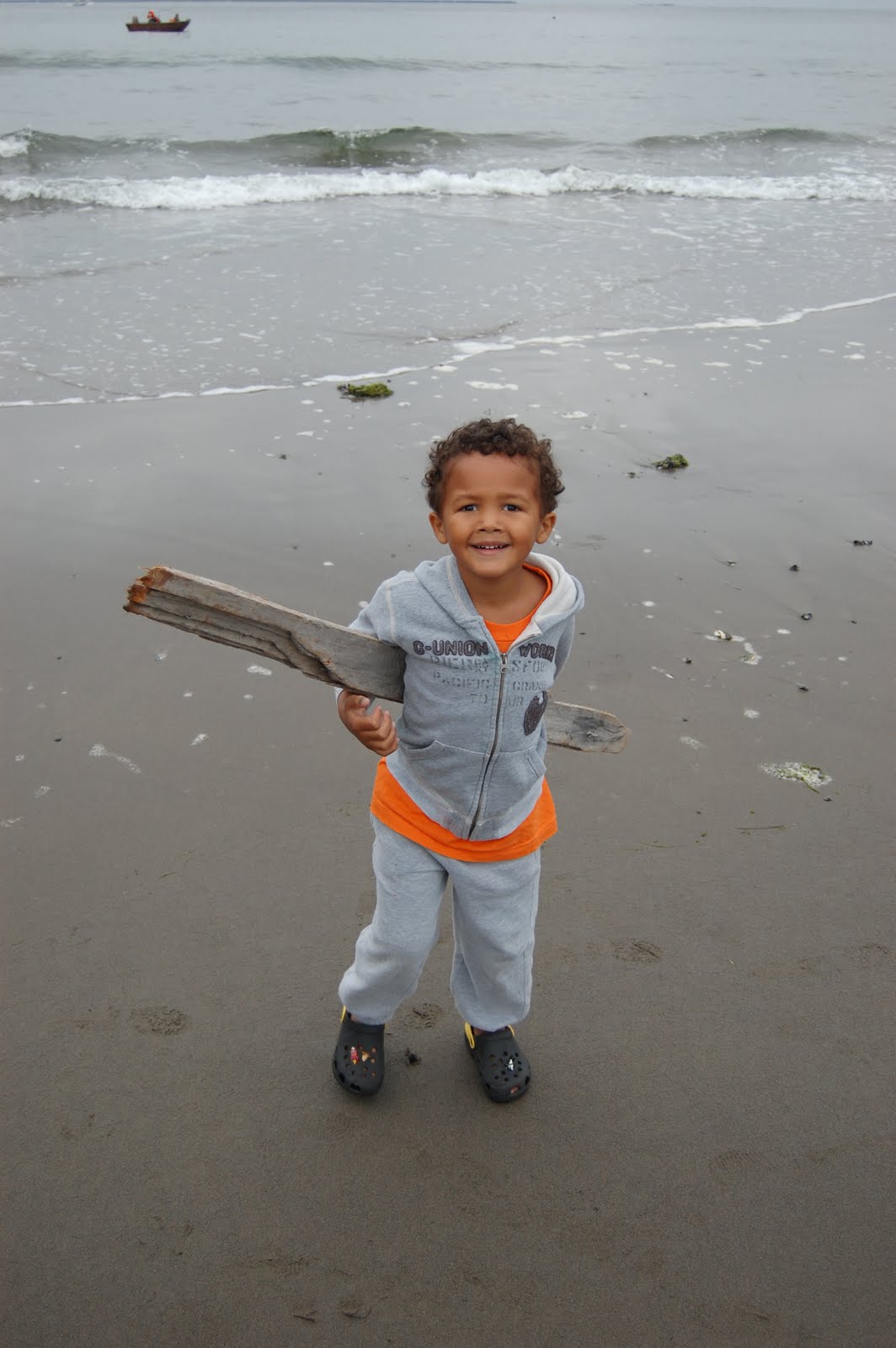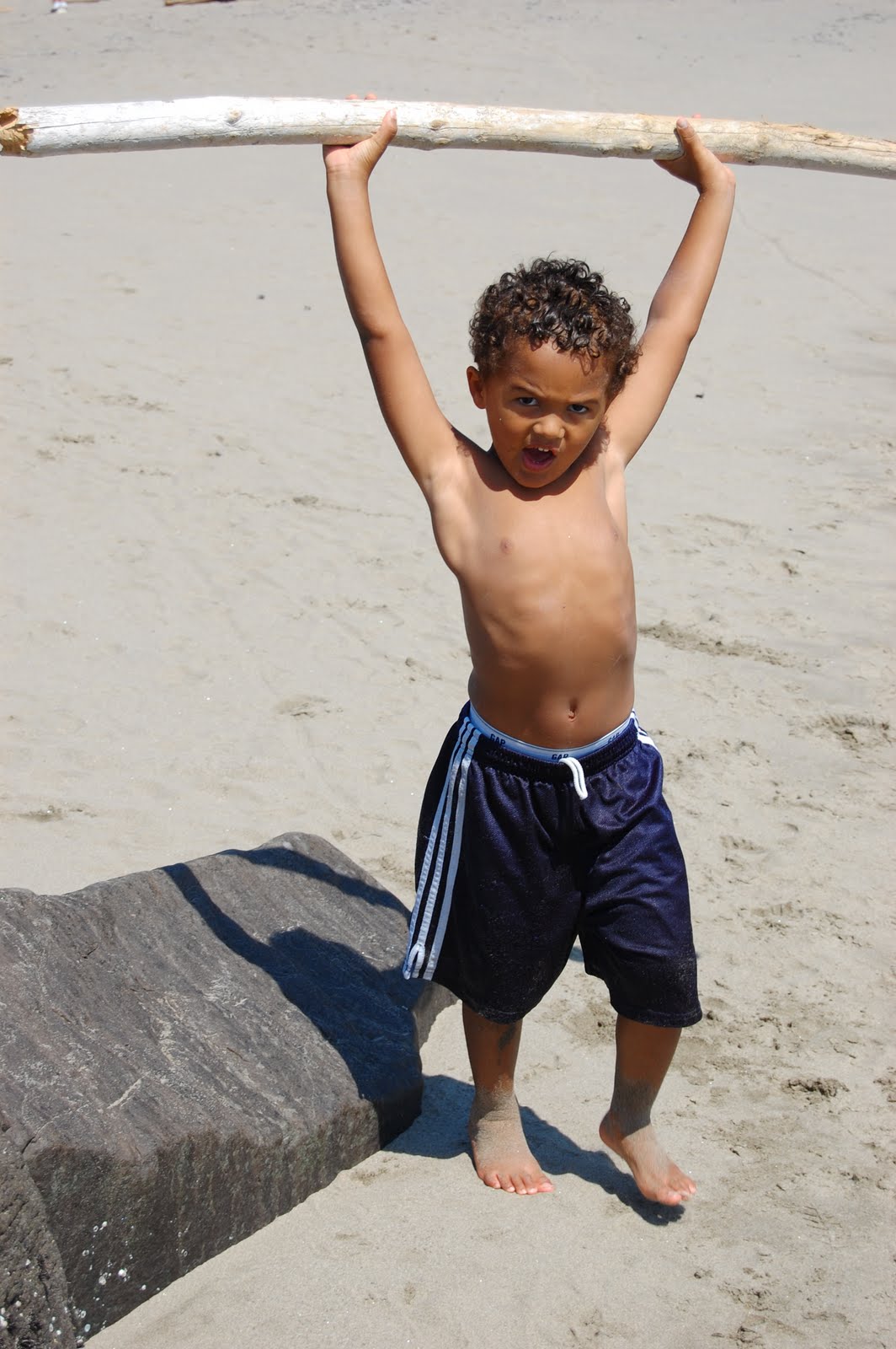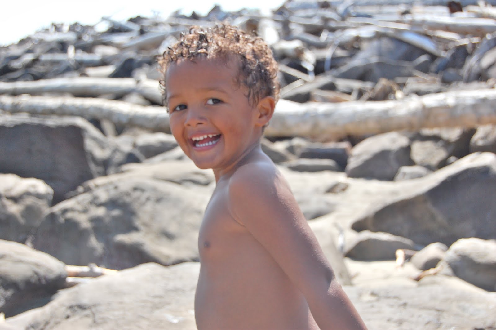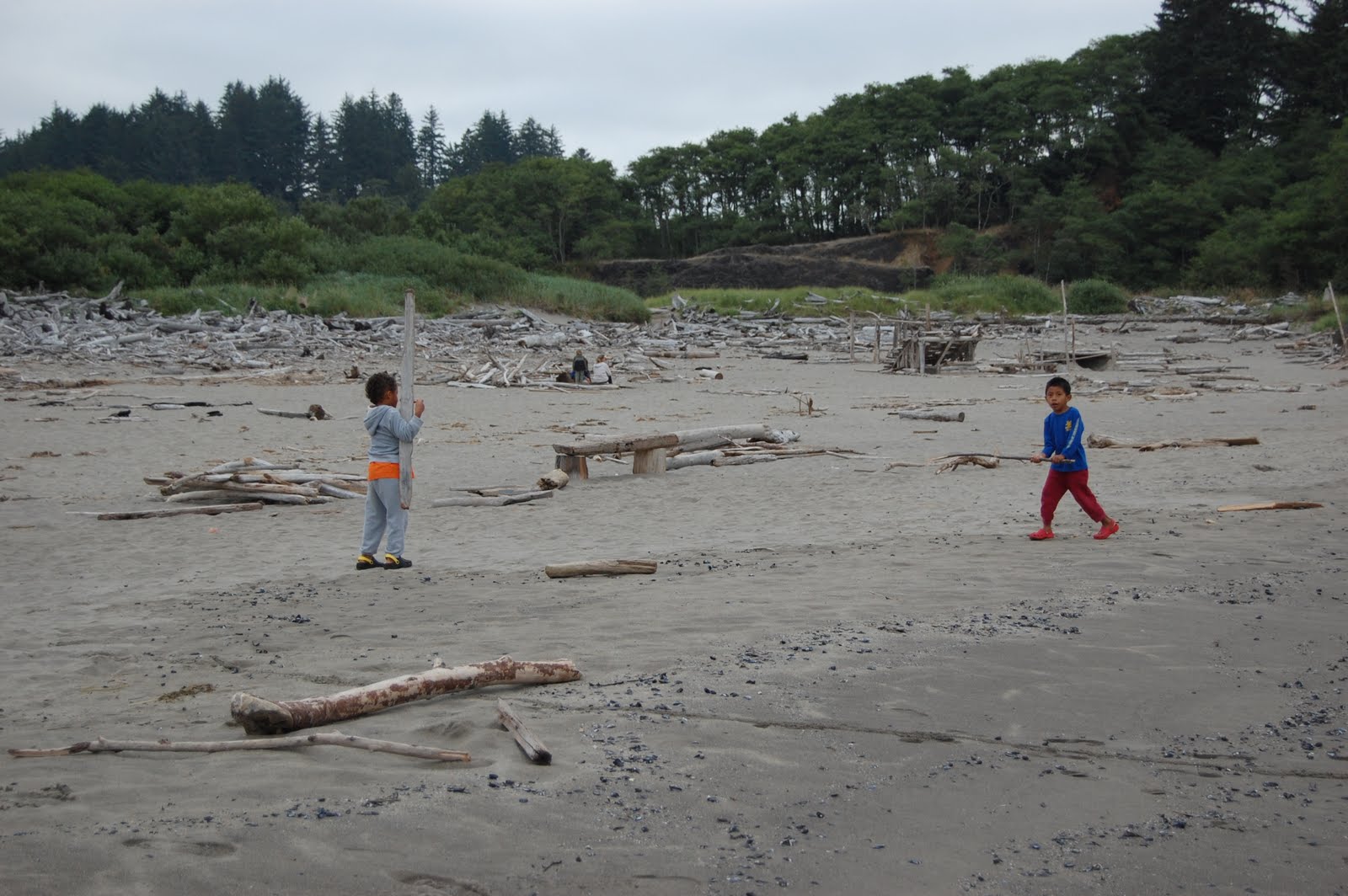 Dee, Trey, Carlos and I were sleeping in the tent and got up early the first morning. We loaded up the van and went to get coffee (MUCH needed coffee) and on the way back thought we would check out Cape Disappointment State Park. It was really cool. There were campsites and hiking trails to the lighthouse and a jetty that people could drive to and fish for salmon from. If we had only been prepared for that. The best find, though, was Waikiki Beach. It’s the neatest inlet, protected by the jetty so there were huge waves, lots of rocks and driftwood so the kids could build forts and the minute Dee and I saw it we knew we’d be coming back and spending the day there. If you are ever looking for a place to camp, I’d highly recommend Cape Disappointment.