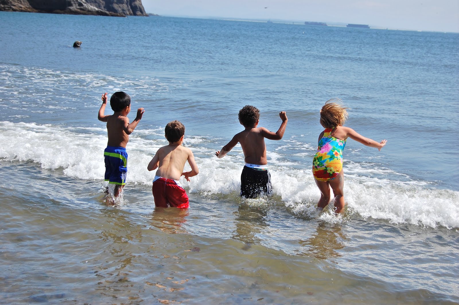 Here are the pics from our fun day at the beach…at one point, there was a sea lion that came into the cove and seemed so close! You can see it in the pictures of all 4 kids in the water. We pulled the kids out of the water because it was barking at all the people. Gotta show some respect to the wildlife, but not all were in that mind frame.