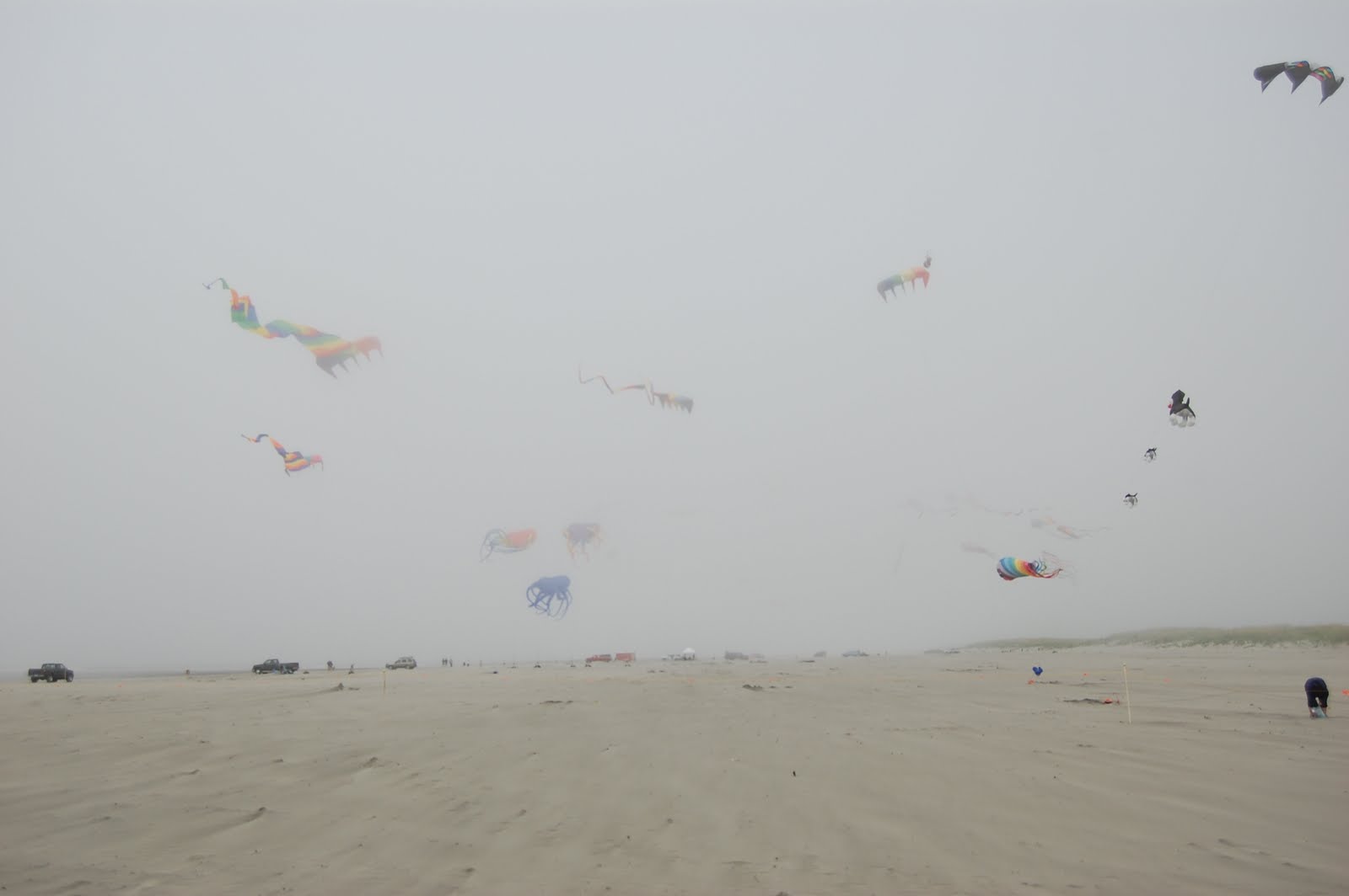 We ventured out to the Kite Festival and as it turned out, we really didn’t get to see much. It was extremely windy and foggy so most the kites weren’t even able to fly. We got to see a few, but with it being so windy the sand felt like little needles hitting our skin so we headed back to the trailor to hang out.