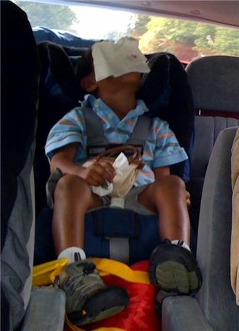 Road trip to Long Beach with the kids (oh yes, camping with all 5 kids plus MayMay and Alice!) and it started out with Carlos getting a bloody nose in the van. The rest of the 5 hour drive was uneventful, the kids slept and watched movies and all were fairly content. Good travelers, they are.
