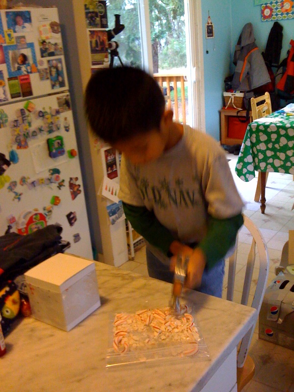 We also borrowed a friends sewing machine, thank you Erika, and made fleece rice bags. It’s a bad name, but basically it’s a sleeve of fleece that you fill with rice and a scent (we chose lavender) and you sew shut. Then you can heat it in the microwave for about a minute and it becomes a great smelling, moist heat that you can use like a heating pad. Our boys each have one that we heat up for them each night that immediately warms up their beds and makes them super cozy. We have had a couple of the boys come loose at the seam and I’ve had to do some hand stitching repairs, but they are not so gentle with them. I worry that ones we made as gifts might do the same, fingers crossed they hold together.