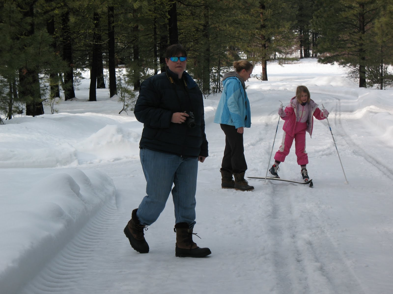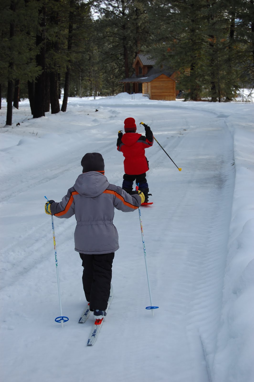 After settling in, we went out to play in the snow, of course. They have a shed here with tons and tons of snow gear. Sleds, cool snow skateboards (not snowboards, it was little with no bindings), snow shoes and cross country skis. I was skeptical about the snow shoes working, as I was still sinking down about an inch or two while I was walking in them, but after I tried walking around the house without them and stepped knee deep into snow, I got it.