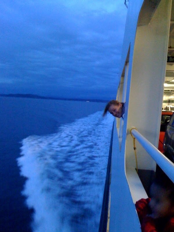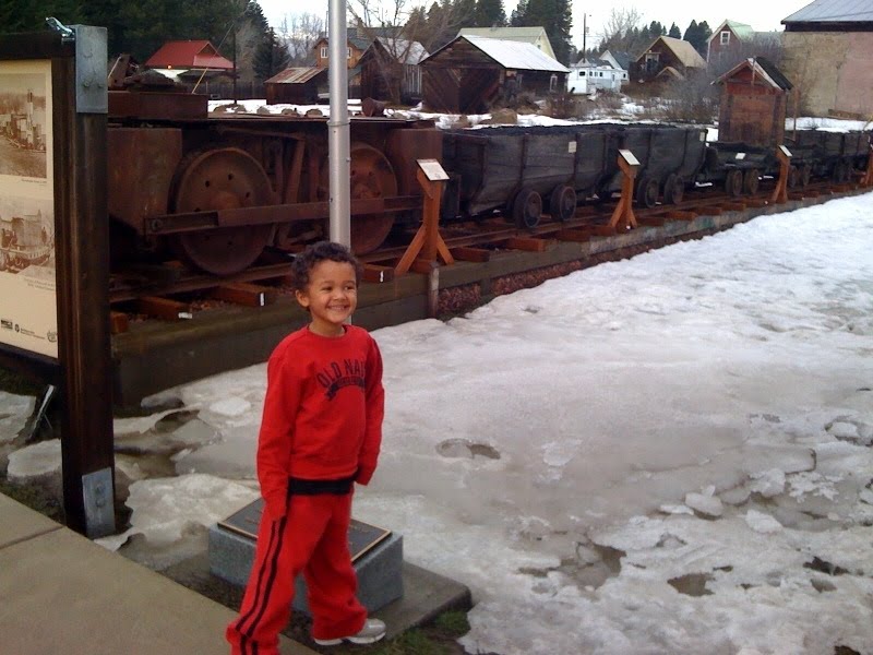 The 7:05 boat was packed, as always, with commuters but we went upstairs and let the kids walk around a little before being cooped up in the car for 5 hours. Carlos goofed around in the bathroom with the hand dryer, a favorite. Our first stop was in Roslyn for breakfast. I always love going to Roslyn because of the show Northern Exposure and it’s a quaint little town with tiny houses and a great feel to it. The Brick was closed so we had breakfast at a little cafe across from the big Roslyn Cafe sign. Couldn’t help but have a photo op there. The kids played in the snow and both Carlos and Trey biffed and whacked their heads. Carlos told us that he wanted to go home and that he “wasn’t cut out for this snow stuff.”