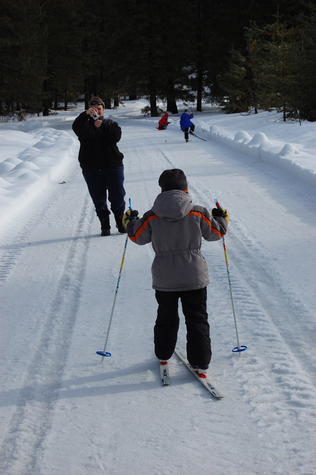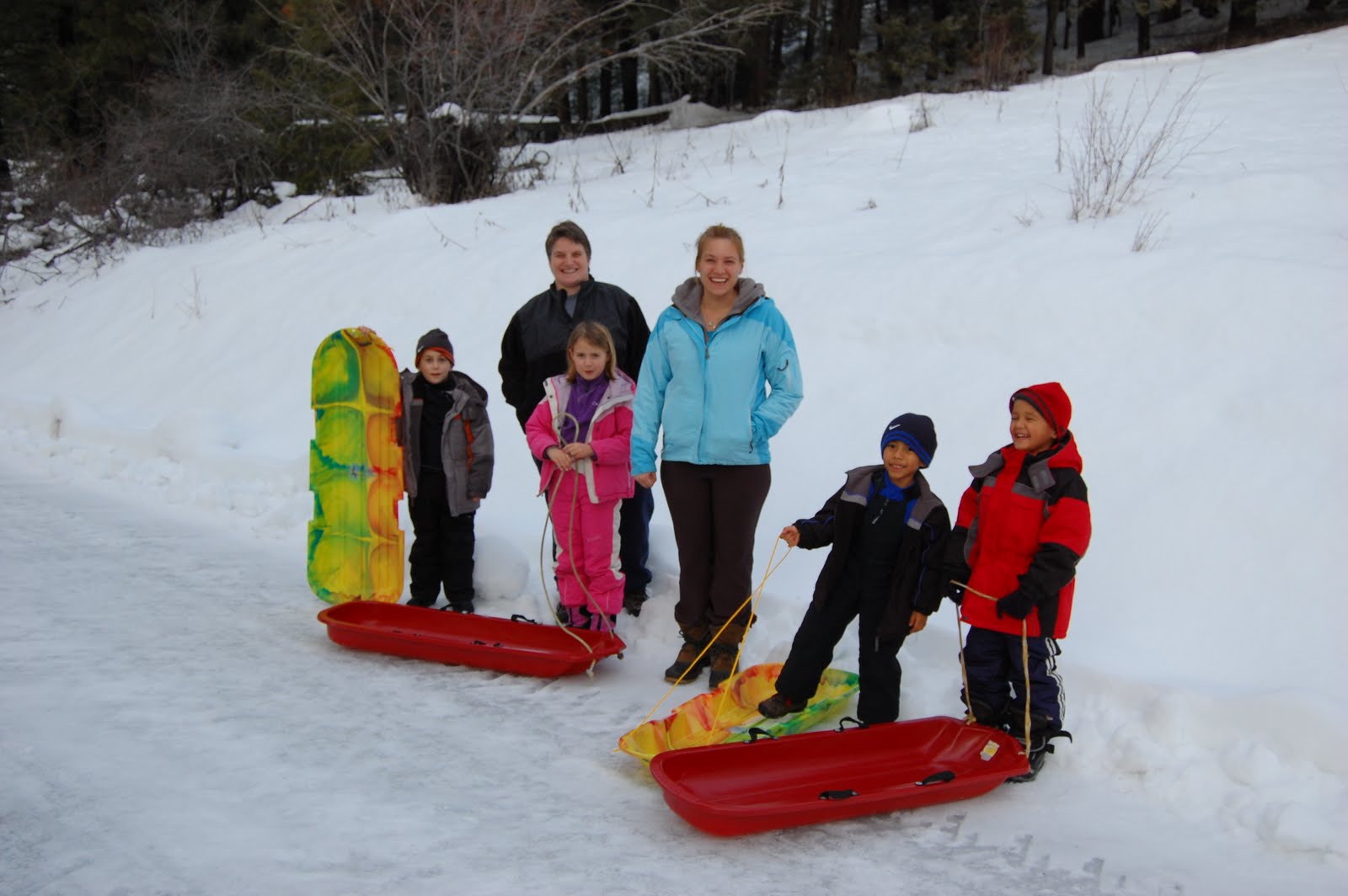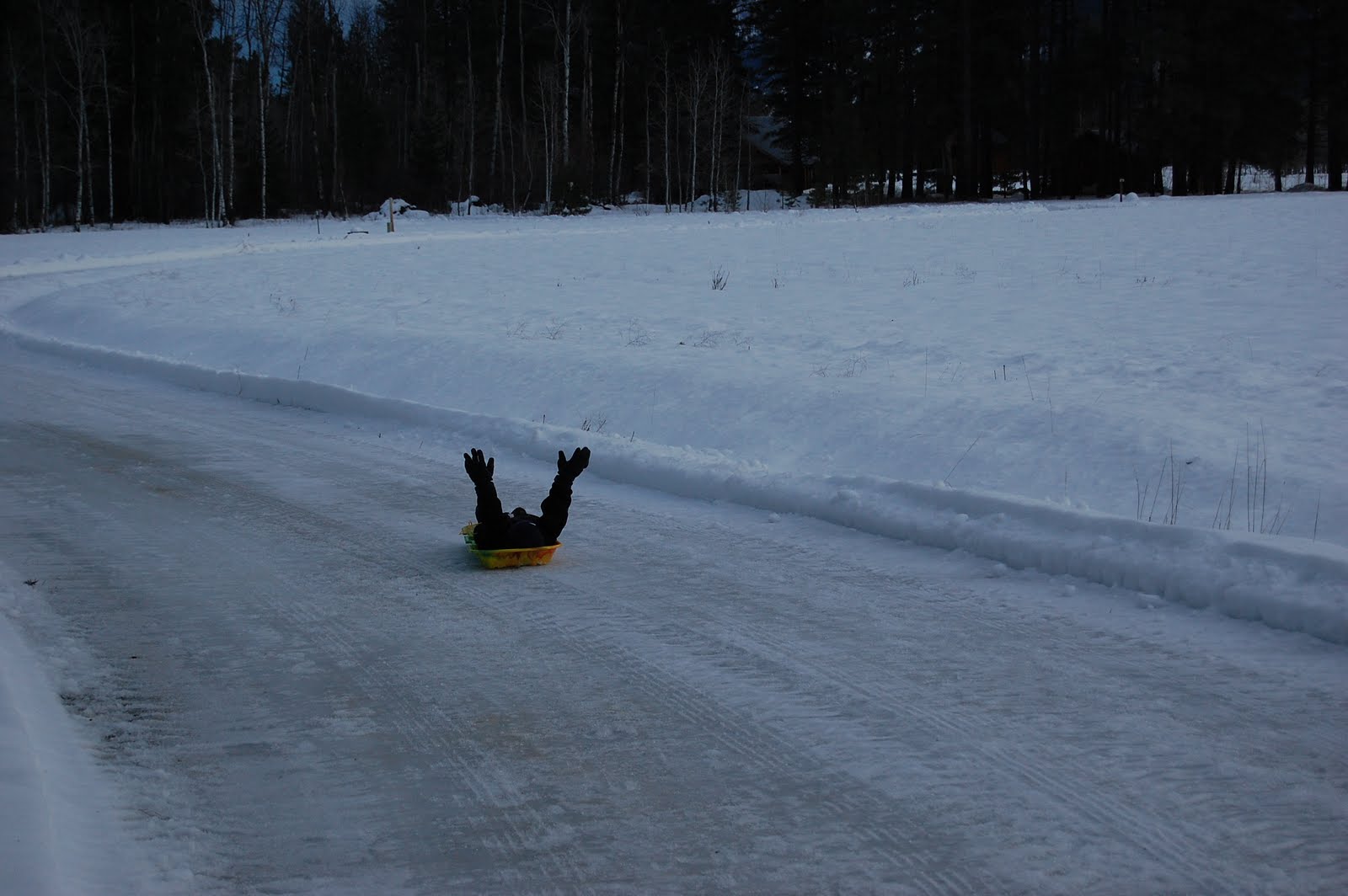 Not quite the slopes, but the road just down from the house. It’s a perfect hill for sledding and they had just driven through with the snow plow so it was smooth and ready for the sleds. The run was FAST and everyone went right off the road and into the field. Since it was all icy snow it just made the ride have a little jump in the middle and continue on. We plan on hitting that hill at least one more time today and tomorrow before we leave.