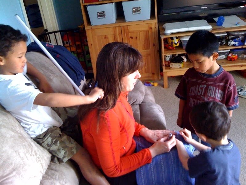 Carlos is quite the little adult these days, such an old soul. The things he says and wants to do really aren’t what the regular 5 year old boy tends to gravitate to. Nana asked if we would be willing to help out at the coffee hour at chuch last weekend and Carlos volunteered to go with me. Just before we were going to duck out of the service to start the setup, Carlos leaned over and whispered in my ear, “Why are we going to set up and serve all of these people when they could be serving me?”