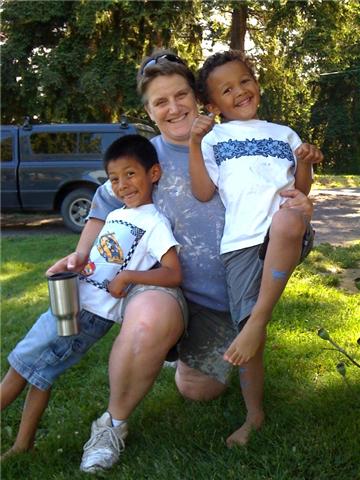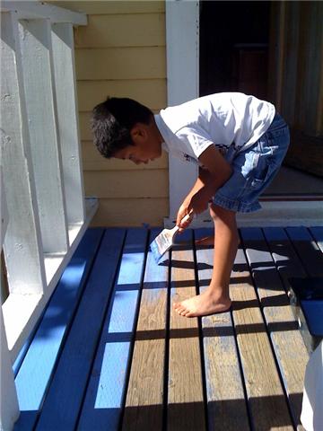 I don’t quite know how Dee got this awesome picture, with the paint clothes and all it looks like she did all the porch painting…but…it was mostly the boys and I, and then when Dee got home from work she touched up what we had done. It’s a great picture, though.