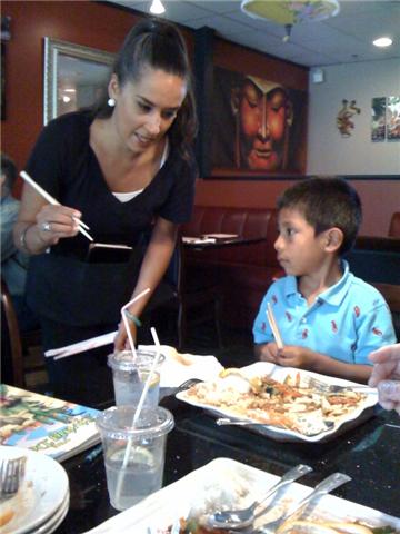 Dee and I went out for lunch a few weeks ago, 5 kids in tow, but we were starving and out and about. Ended up at Sawan’s and it was a tasty treat. The boys really wanted to learn how to use chopsticks, but Carlos was the only one brave enough to ask for lessons. They all took their chopsticks home so they could practice, but they eventually all ended up as Harry Potter wands or in a duelling sword battle. Boys will be boys.