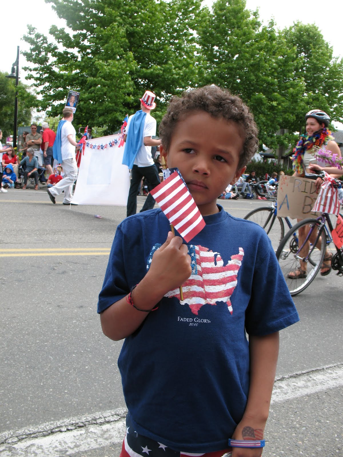 Just a few pictures from the 4th of July parade. Seemed smaller this year, and we didn’t even make it down to the boothes. Levi and Alice rode on the Island School truck so they had a completely different view of things. Carlos and Trey collected a lot of candy (shared with Levi and Alice) and entertained the people around us. In the parade there are an equal number of people spraying super soakers as throwing candy. At one point Trey got sprayed and stood up, pointed at the kid and say “Hey Mister, I really didn’t appreciate that too much!” Too funny.