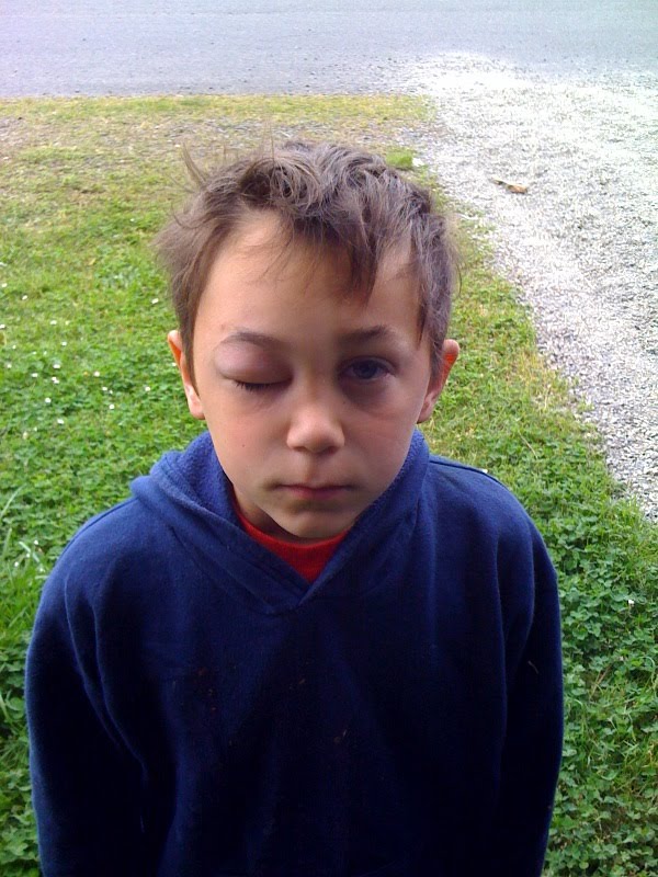 Levi came out of the tent on Saturday morning with his eye swollen shut and black n blue. It was not pretty! Apparently at some point he had been bit by a bug and apparently, he’s allergic. Nothing that a trip to the dr’s office, a few mighty doses of Benedryl and a day resting at Nana and Papa’s couldn’t fix. The funny part about it was that Carlos was convinced that Levi had made the bug bite him just so he could have his face swell up and he could spend the day with Nana and Papa!