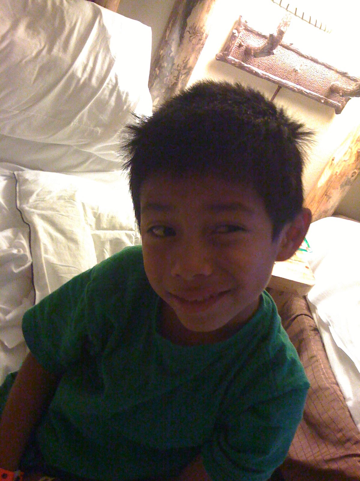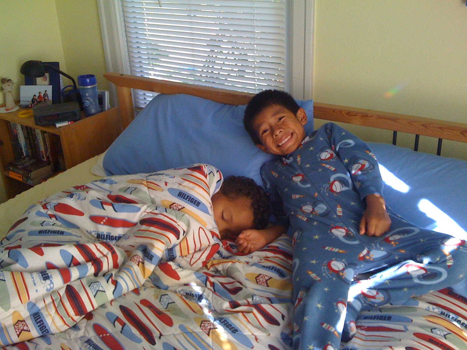 I did get this picture, that was super cute. When Carlos got home from school on Tuesday, he immediately got into his jammies and snuggled up with Trey in our bedroom to keep him company (oh…and watch Pokemon!).