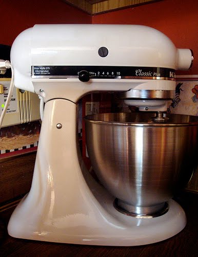 So, I’m an avid baker that’s been in semi-retirement for the last 7 years since the boys came along. I love baking. Despite our small kitchen, I’ve always wanted a Kitchenaid Stand Mixer. They are pricey, so it’s never been a reality. The lack of space is an issue as well, so it’s not even something I’ve saved for. Yesterday on Freecycle there it was….for FREE! I actually know the woman who was getting rid of it (she has been ultra generous and given us a Jumparoo for Baby B and a Britax carseat) so when she saw my “I’d love it” email, she gave it to me.