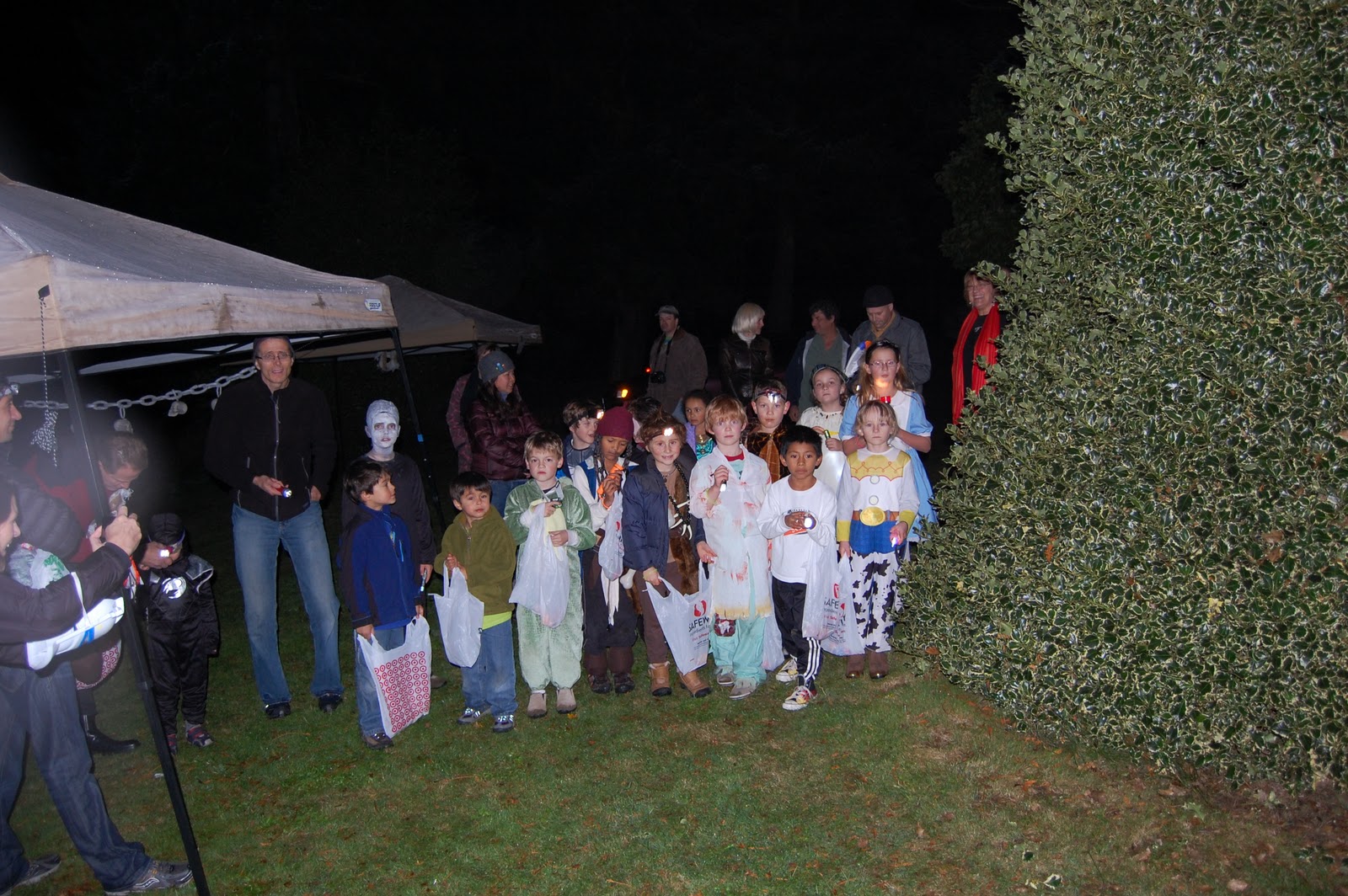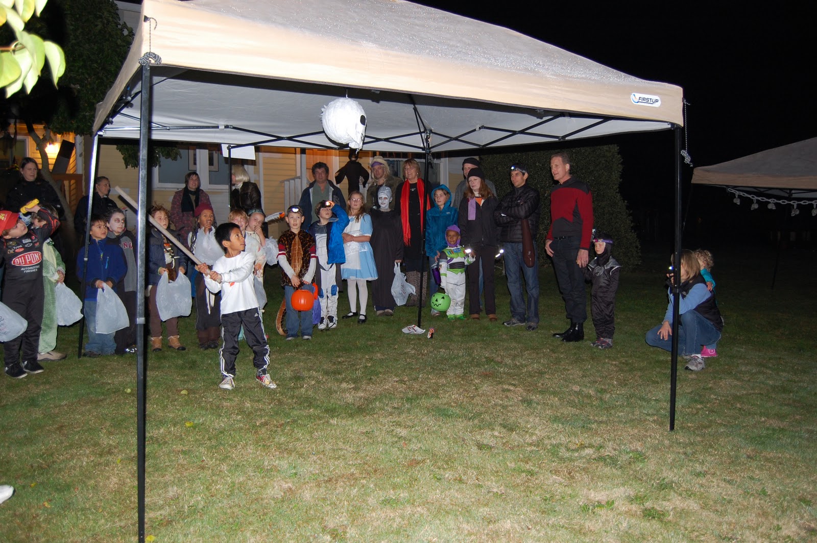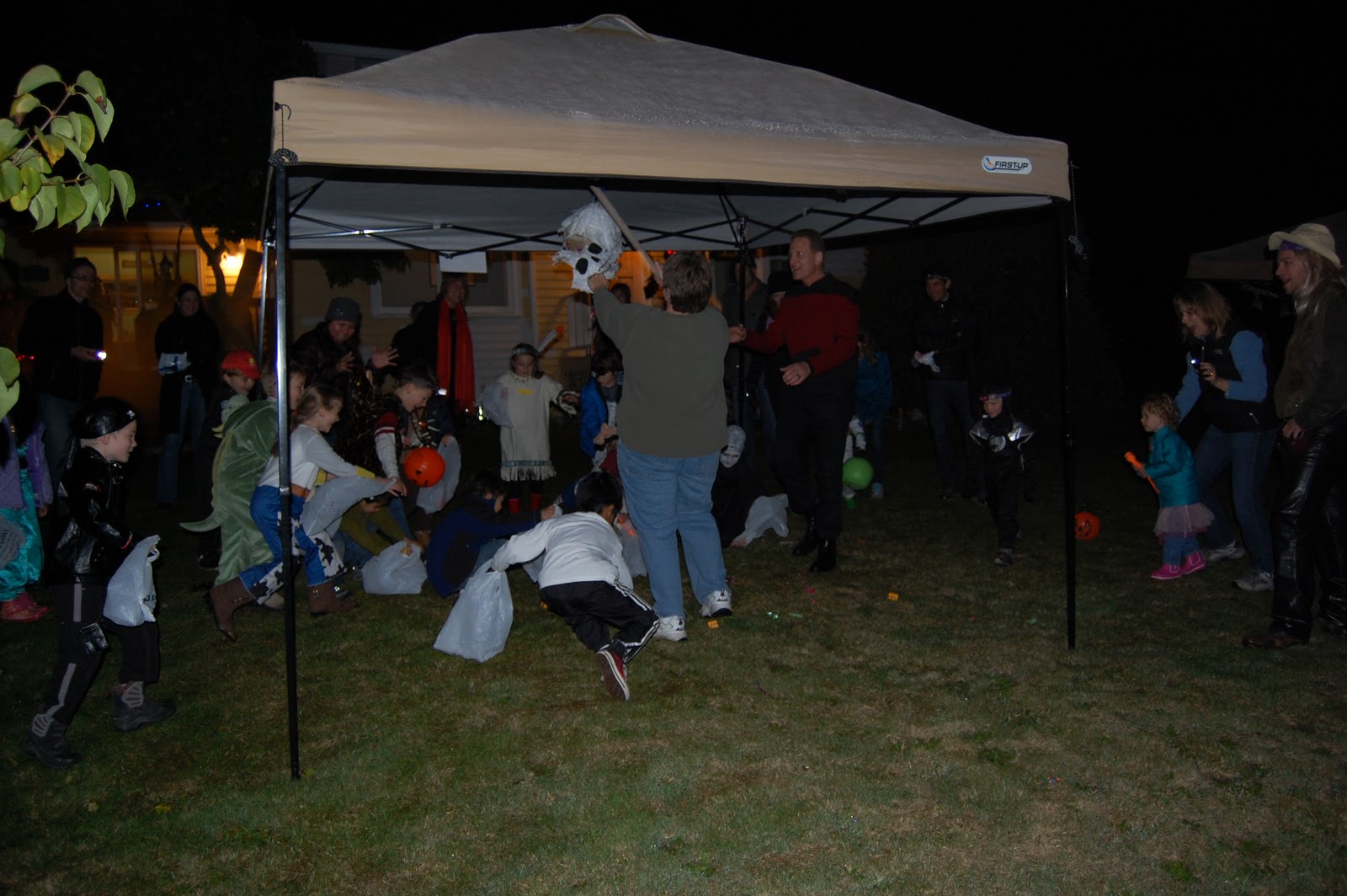 Some highlights of the evening, the Eyeball Relay, Whack-A-Skull, a Scavenger Hunt and the big candy hunt. We put 7 grocery bags full of candy out in the field and the kids made short work of it, finding it all (but 5-6 pieces) in about 10 minutes. Can’t wait for next year’s party…thinking we are going to add a pumpkin slingshot to the activities.