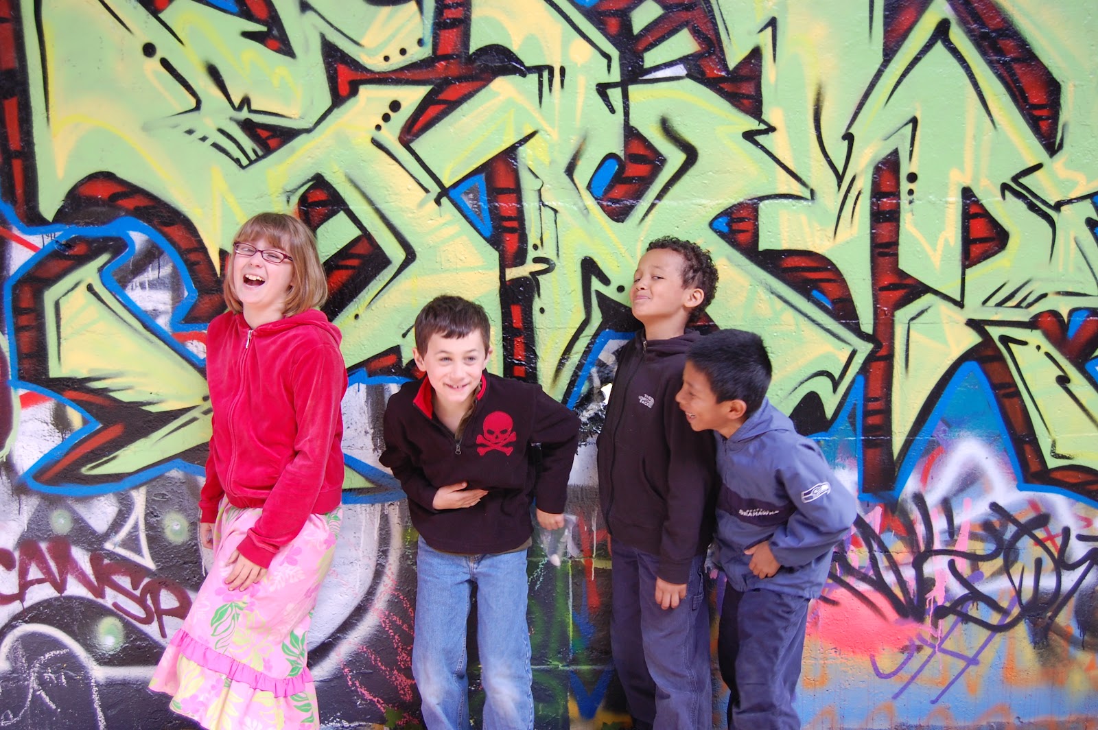 Took the kids on an outing to the old Cannery, which has been tagged by a zillion rebellious high school kids. Made for some great pictures! If I do say so myself, I’ve got some attractive kiddos.