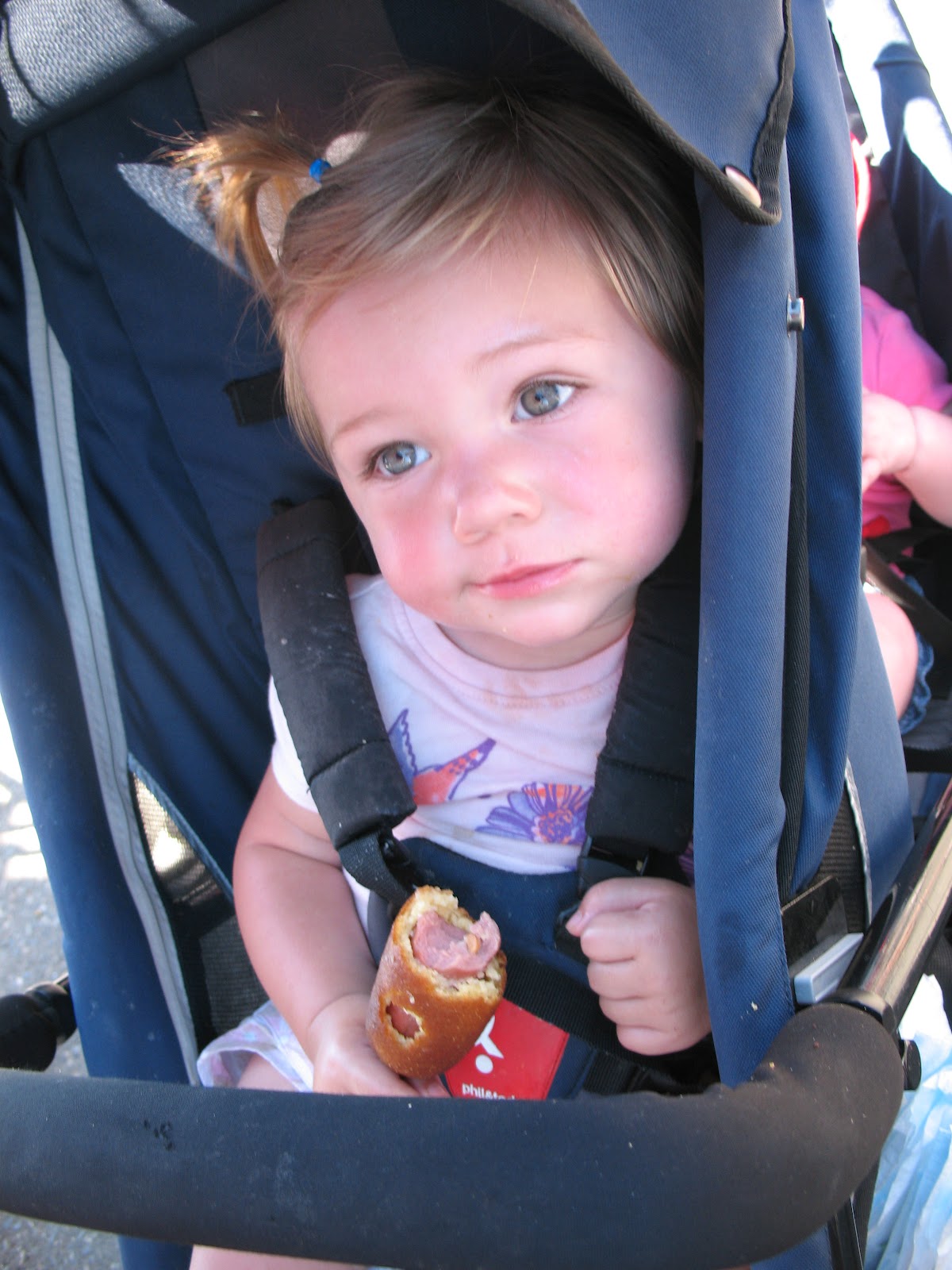 Not sure how she feels about her first corn dog