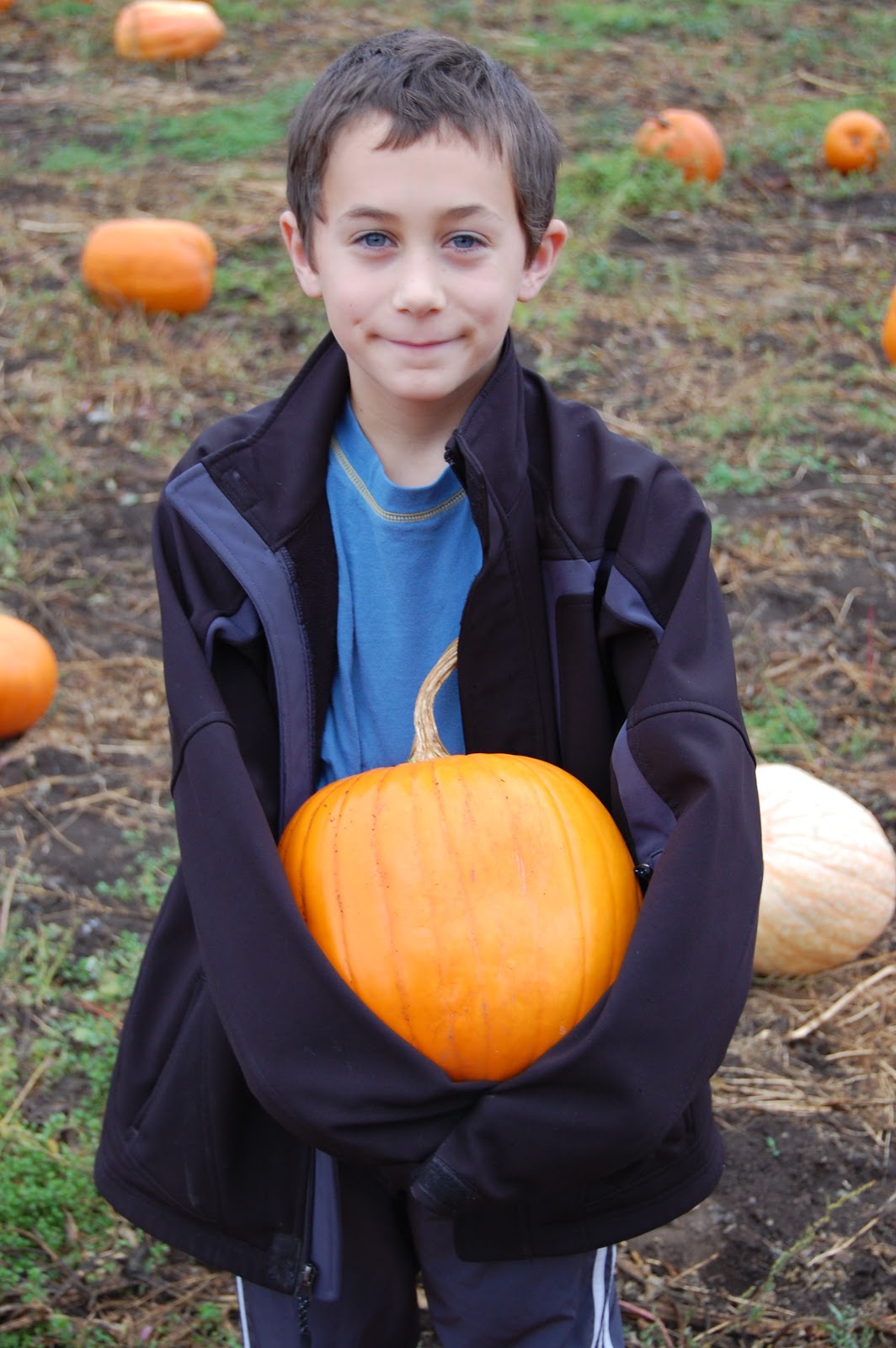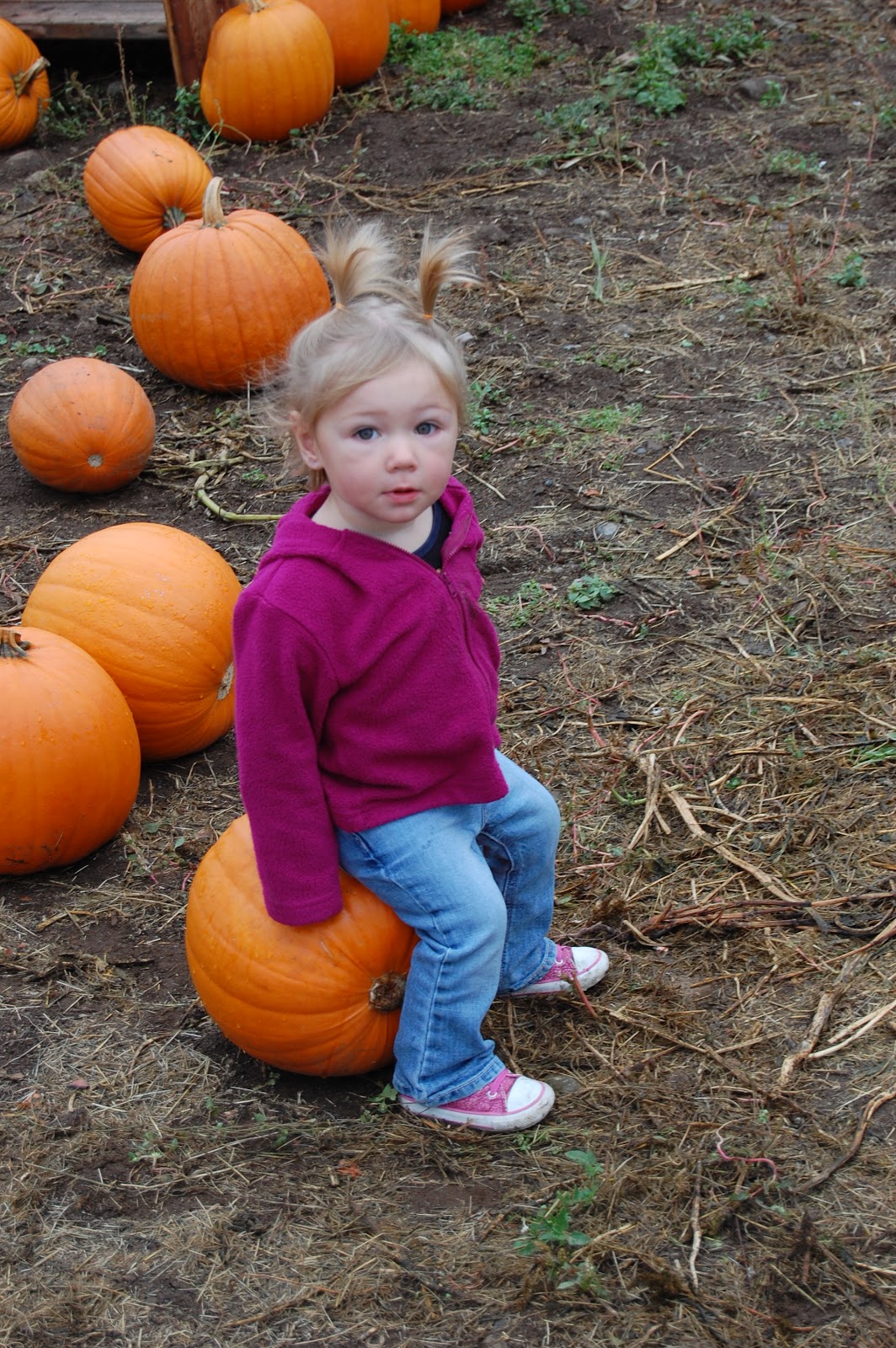 We made the annual trek to the pumpkin patch this morning – spur of the moment decision after seeing the weather forecast calling for a week of rain. Guess the sunshine couldn’t last forever, but we sure were enjoying it.